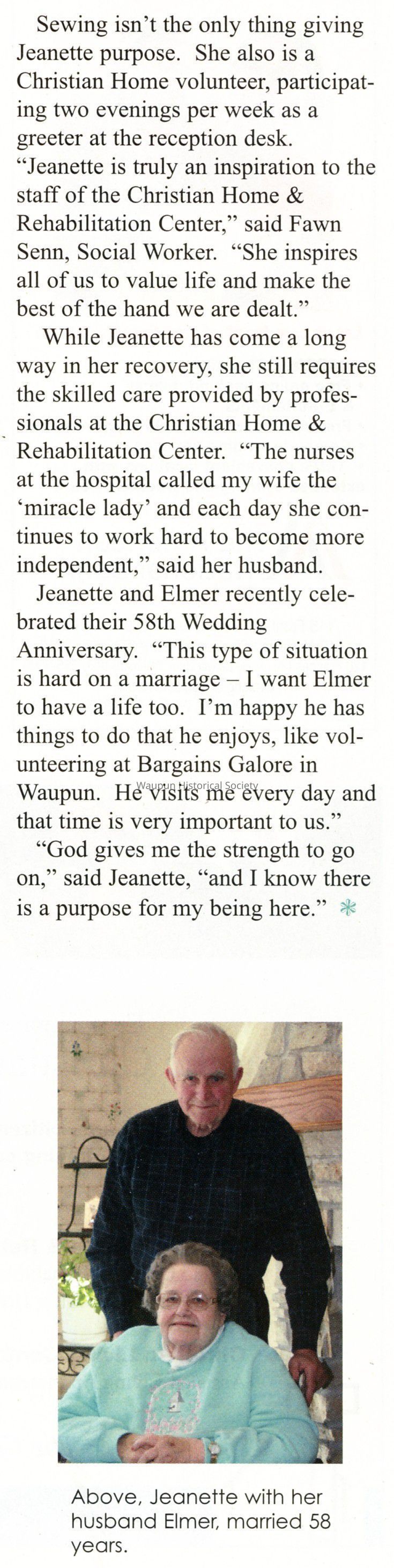Last Photo:[Above, Jeanette with her husband Elmer, married 58 years.]Acquisition