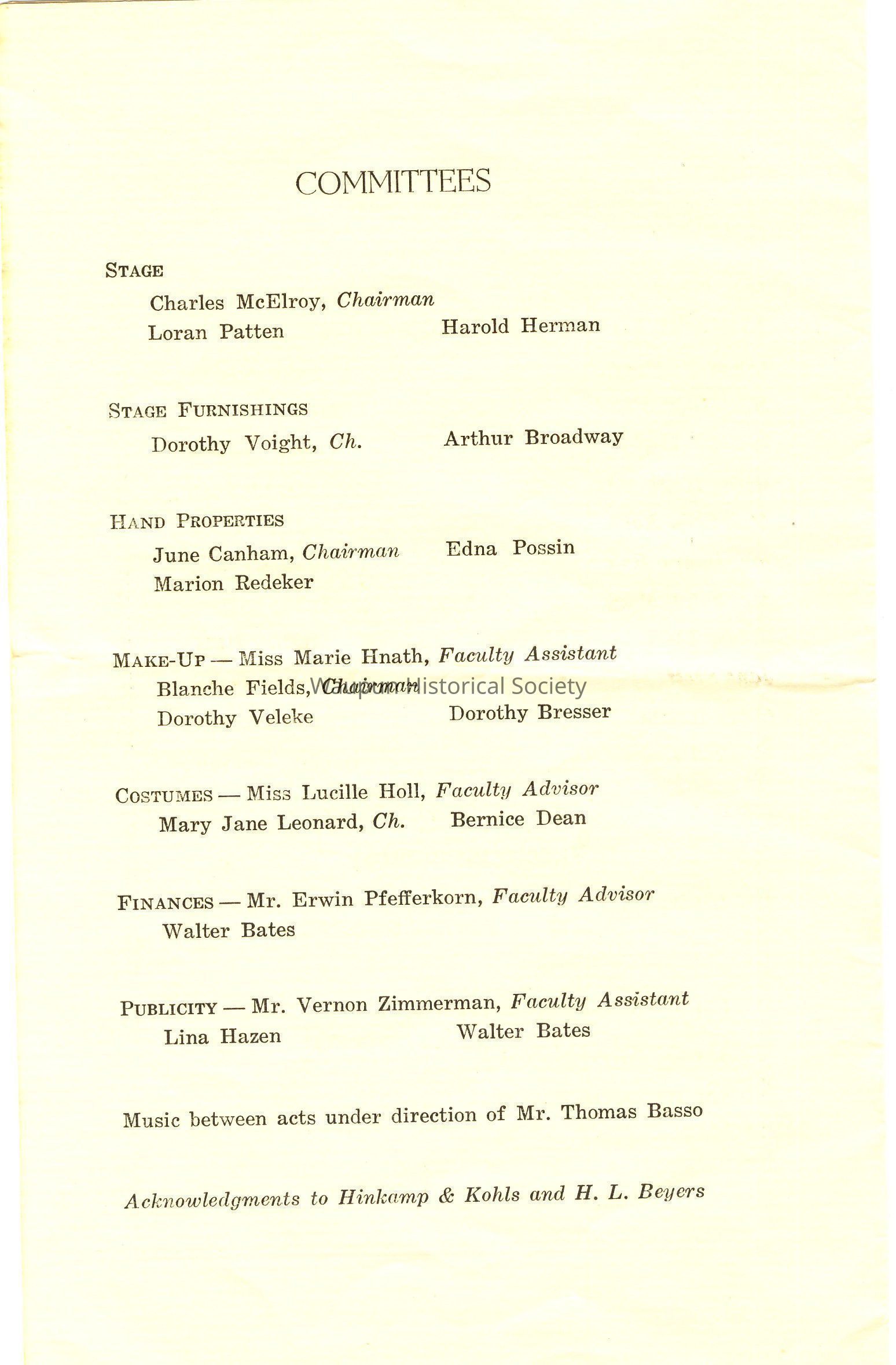 COSTUMES - Miss Lucille Holl, Faculty Advisor; Mary Jane Leonard, Ch.; Bernice Dean