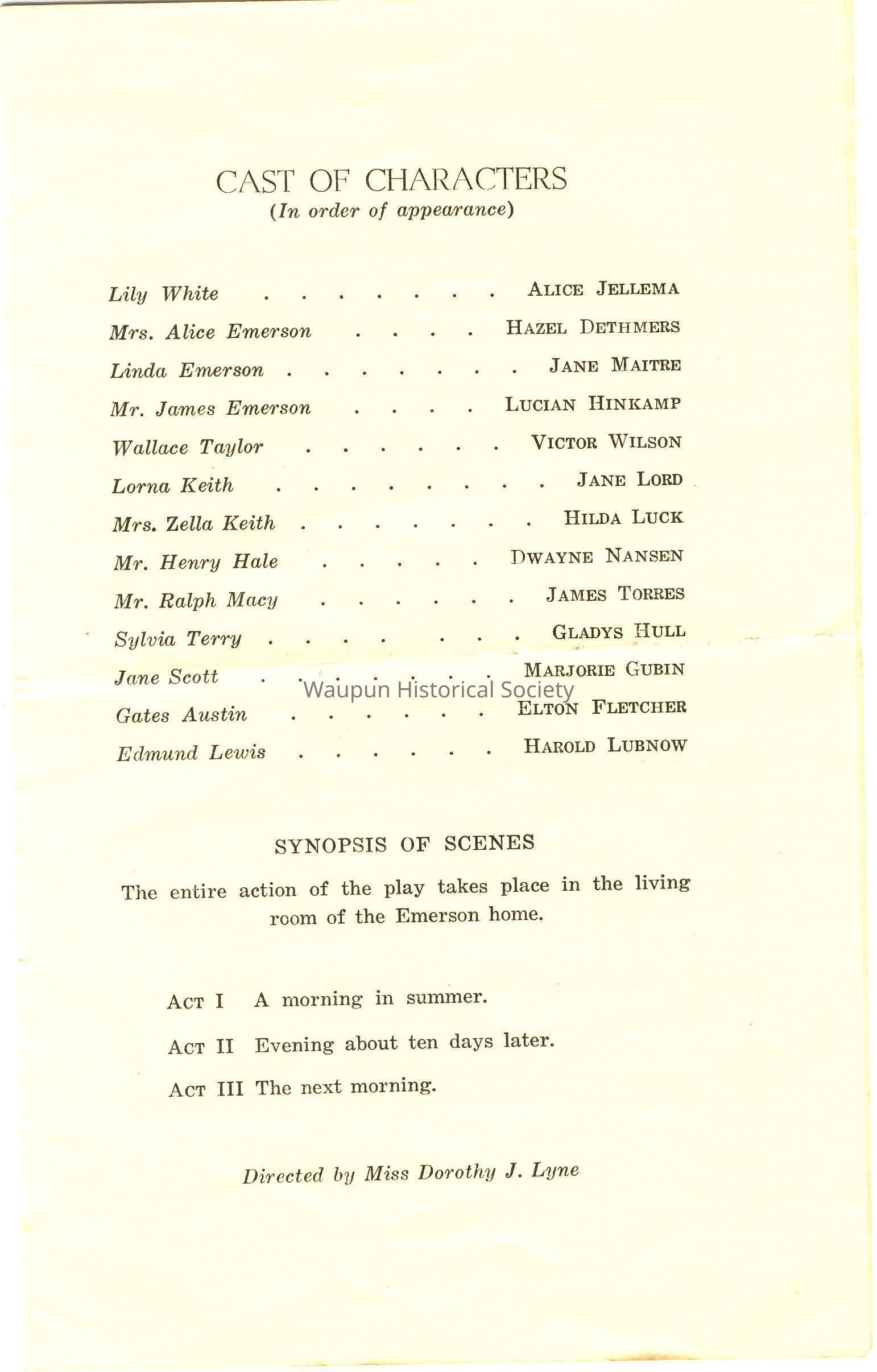 Mrs. Alice Emerson . . . . . . . . . . . . Hazel Dethmers