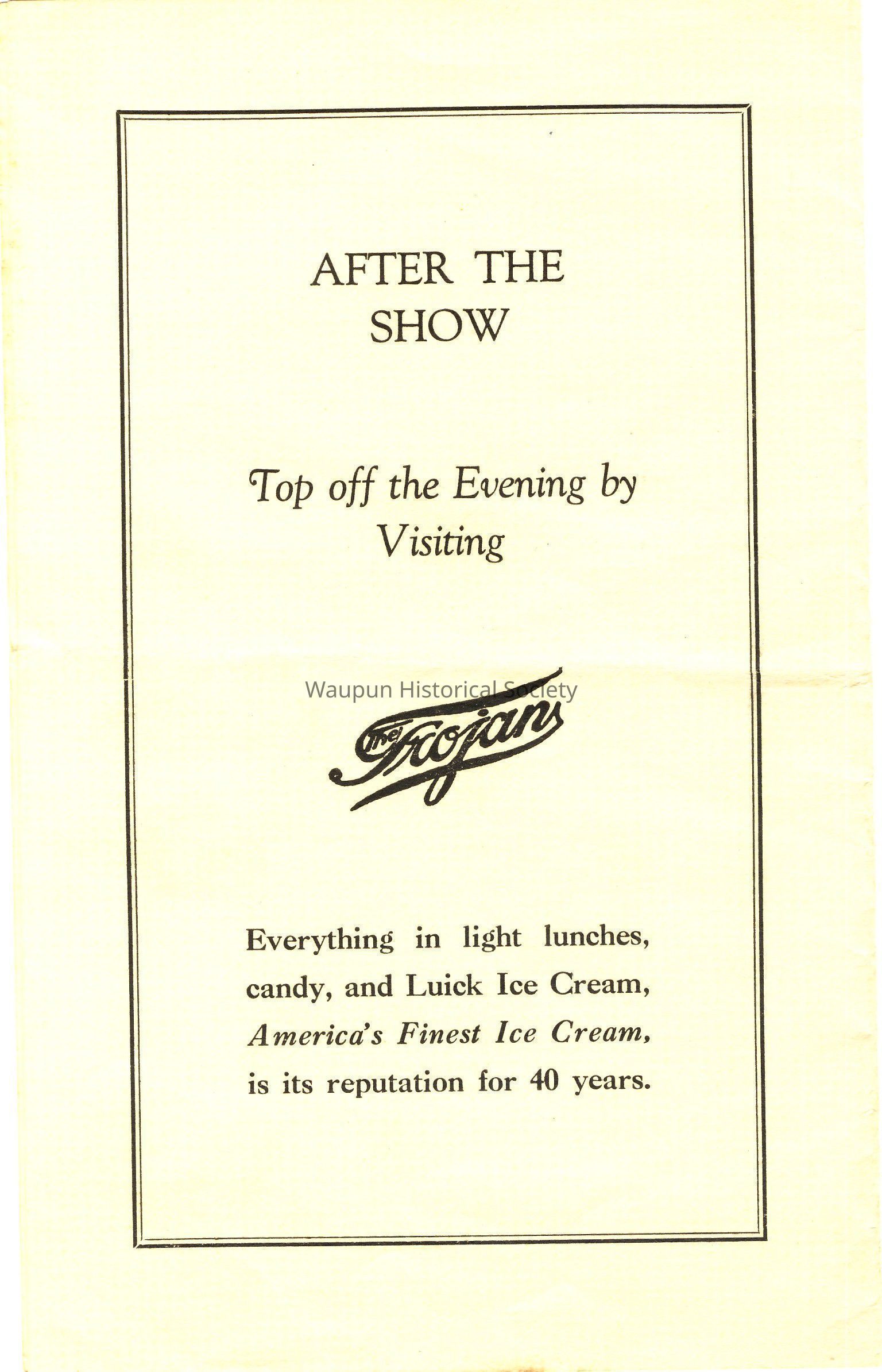 Everything in light lunches, candy, and Luick Ice Cream, America's Finest Ice Cream, is its reputation for 40 years.Acquisition