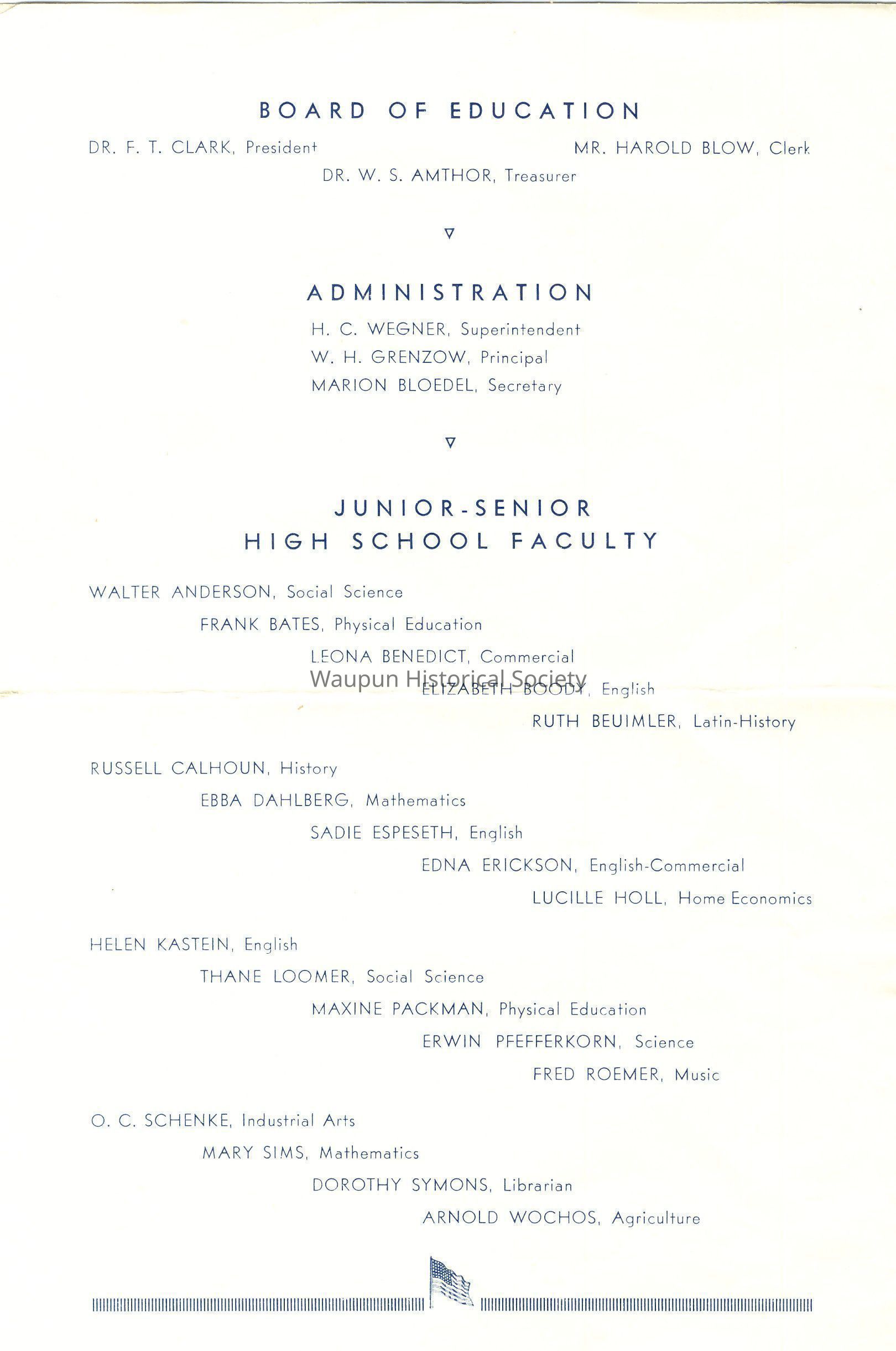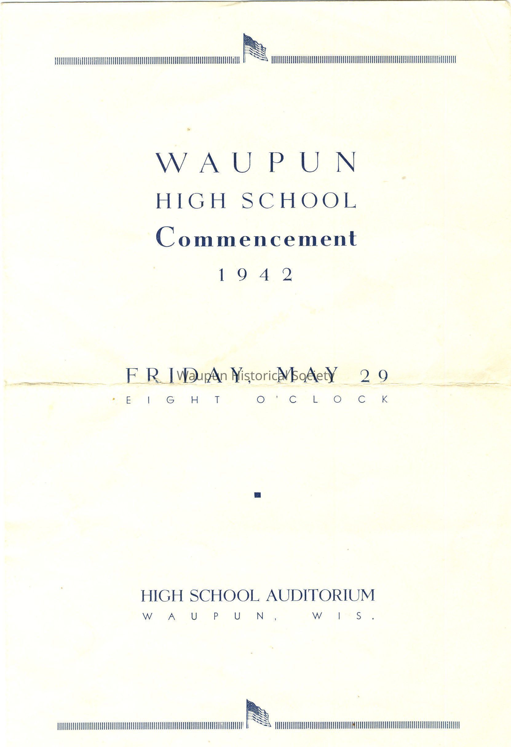 Program, Commencement, Waupun High School, Class of 1942Entry/Object ID