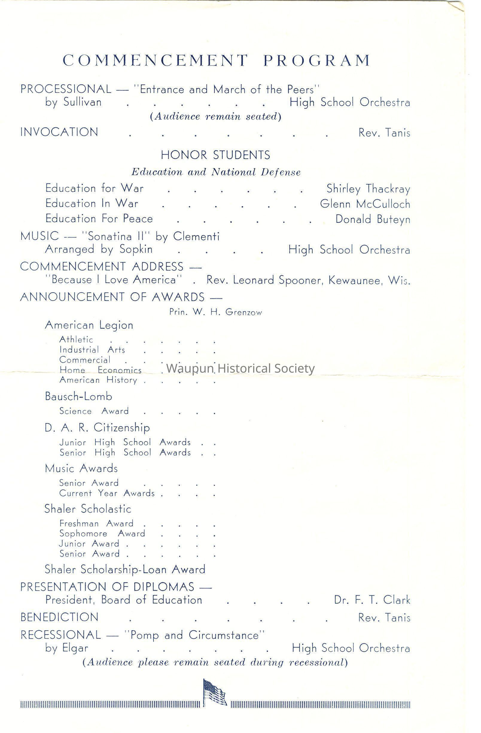 WAUPUN HIGH SCHOOL Commencement 1 9 4 2