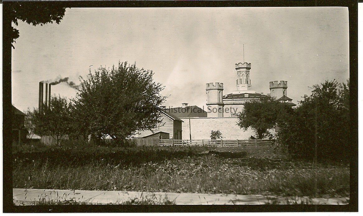 Photograph, Corrections, Wisconsin State Prison. Picture of the prison. Jim Laird purchased this on eBay. This shows very well the different colors on the tower. The picture must have been taken on Madison Street looking at the end of the cell block. The negative for this picture is part 02 of this photo.Acquisition