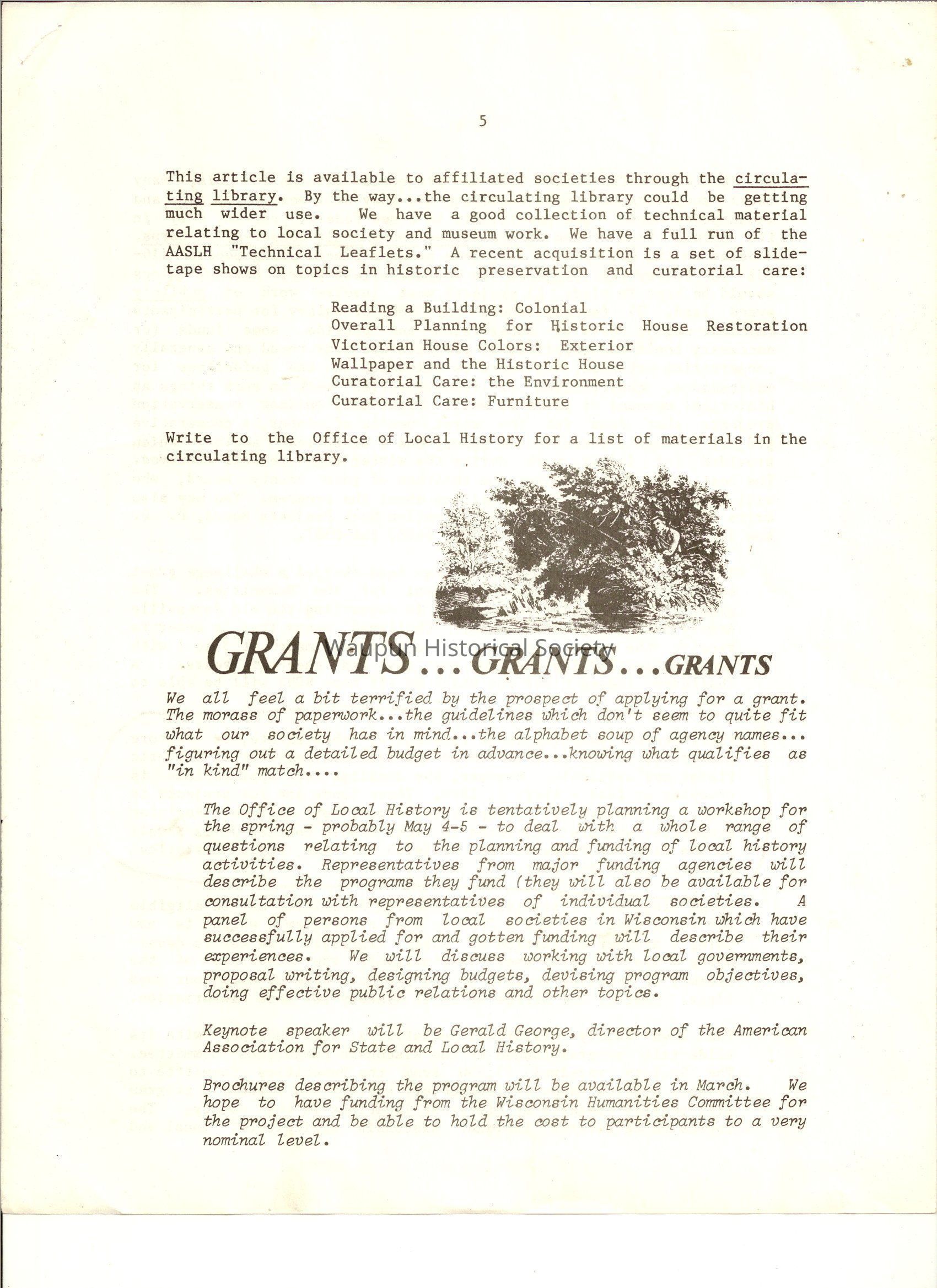 Waupun Historical Society, Grants, Grants, GrantsEntry/Object ID