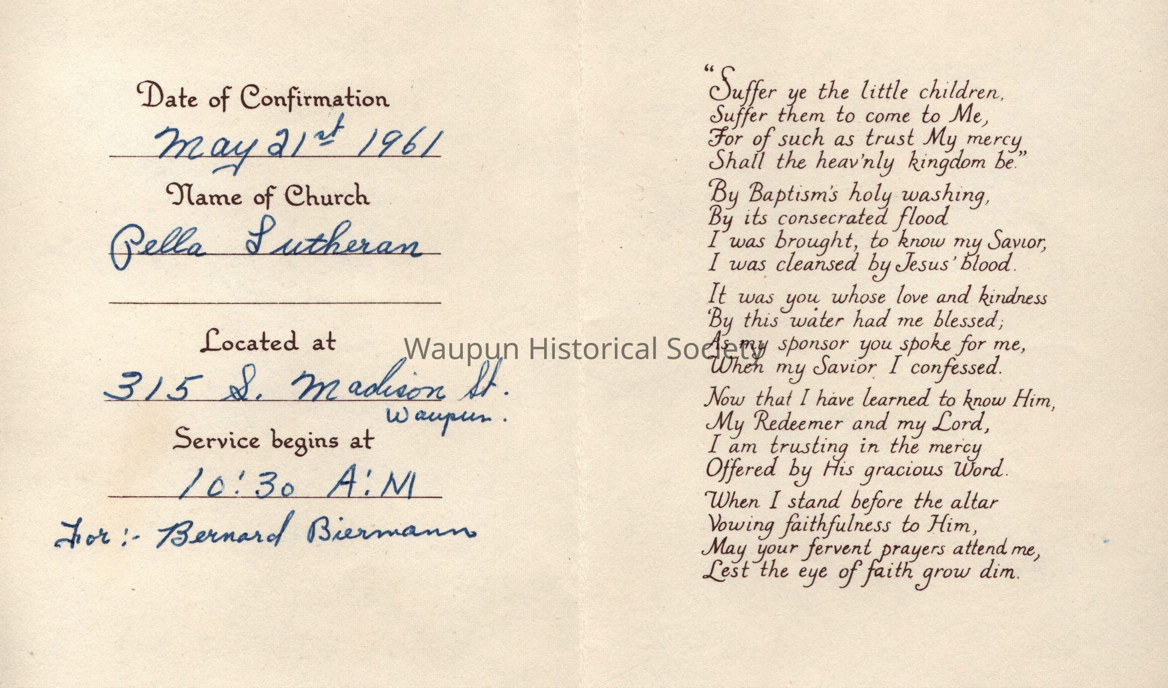 Bernard Biermann Confirmation card