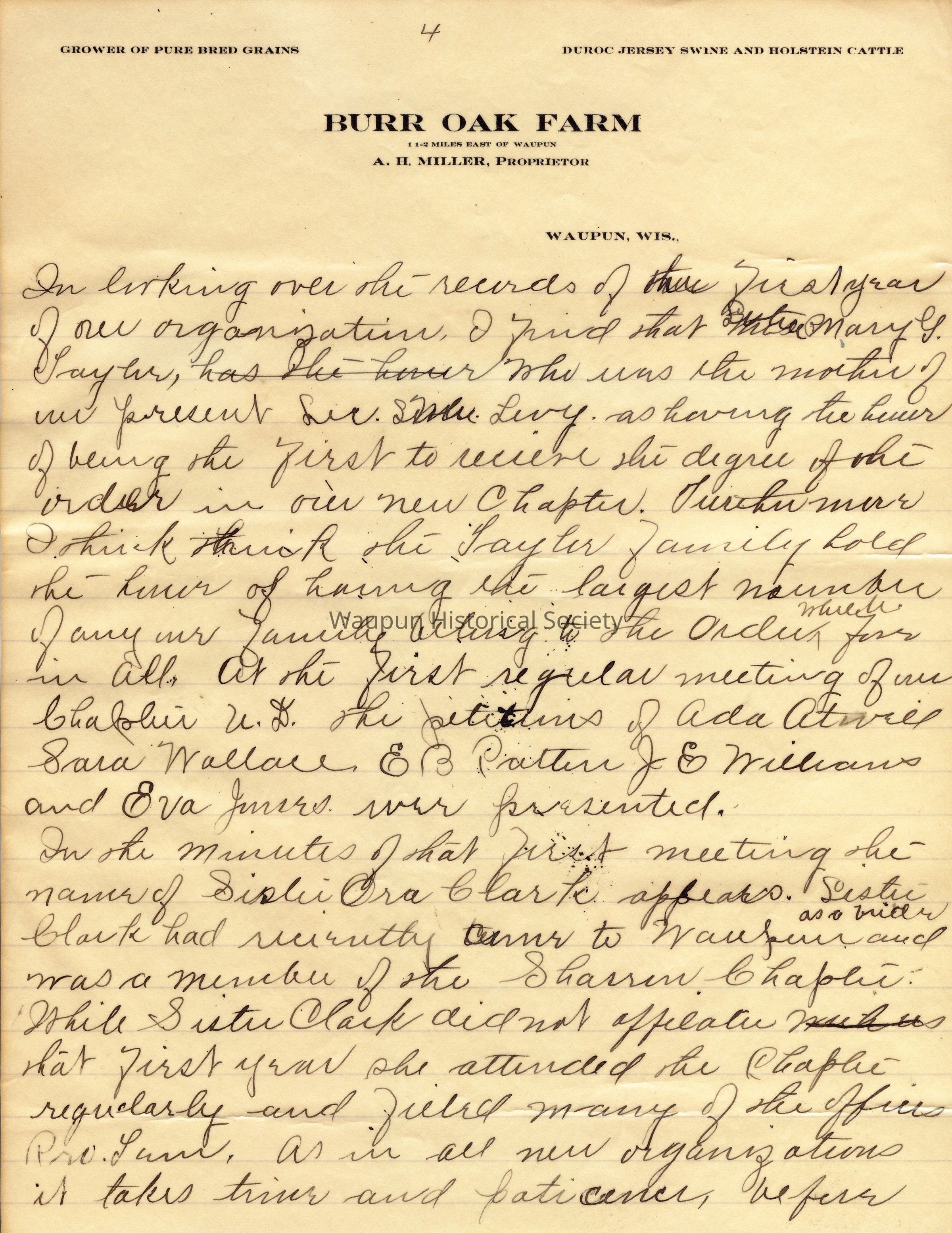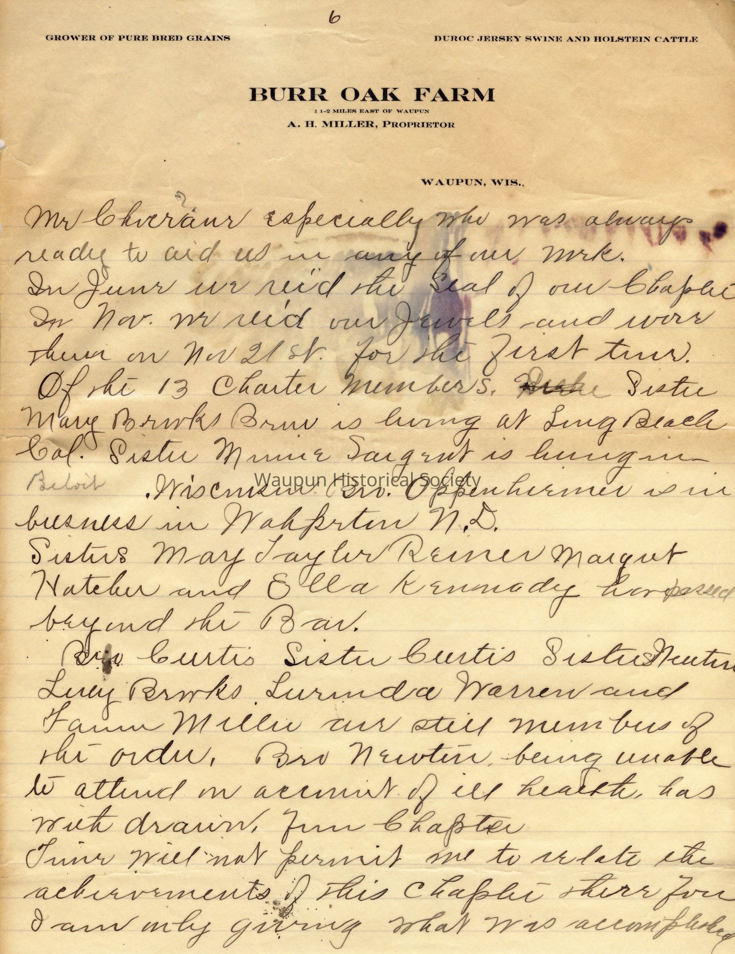 It should be noted that the stationery used was Burr Oak Farm, A. B. Miller, Proprietor.Acquisition
