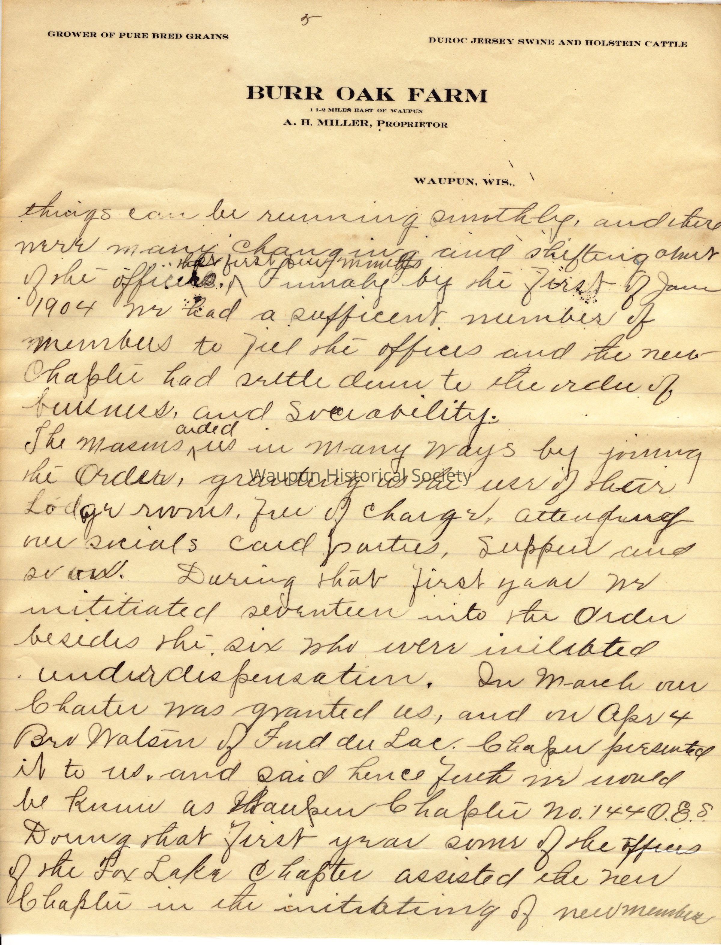 History, Waupun Chapter #144 Order Of Eastern StarEntry/Object ID