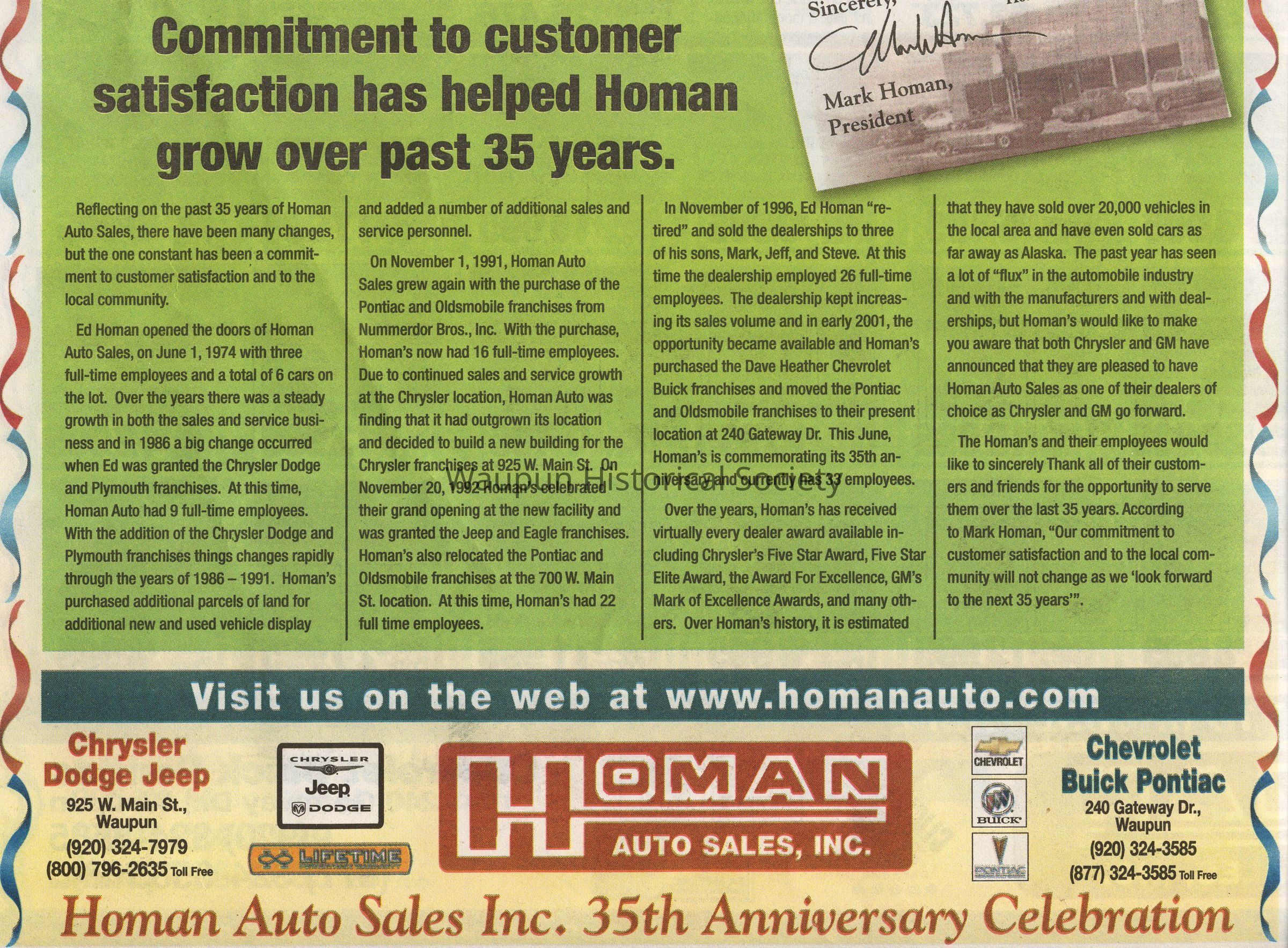Reflecting on the past 35 years of Homan Auto Sales, there have been many changes, but the one constant has been a commitment to customer satisfaction and to the local community.