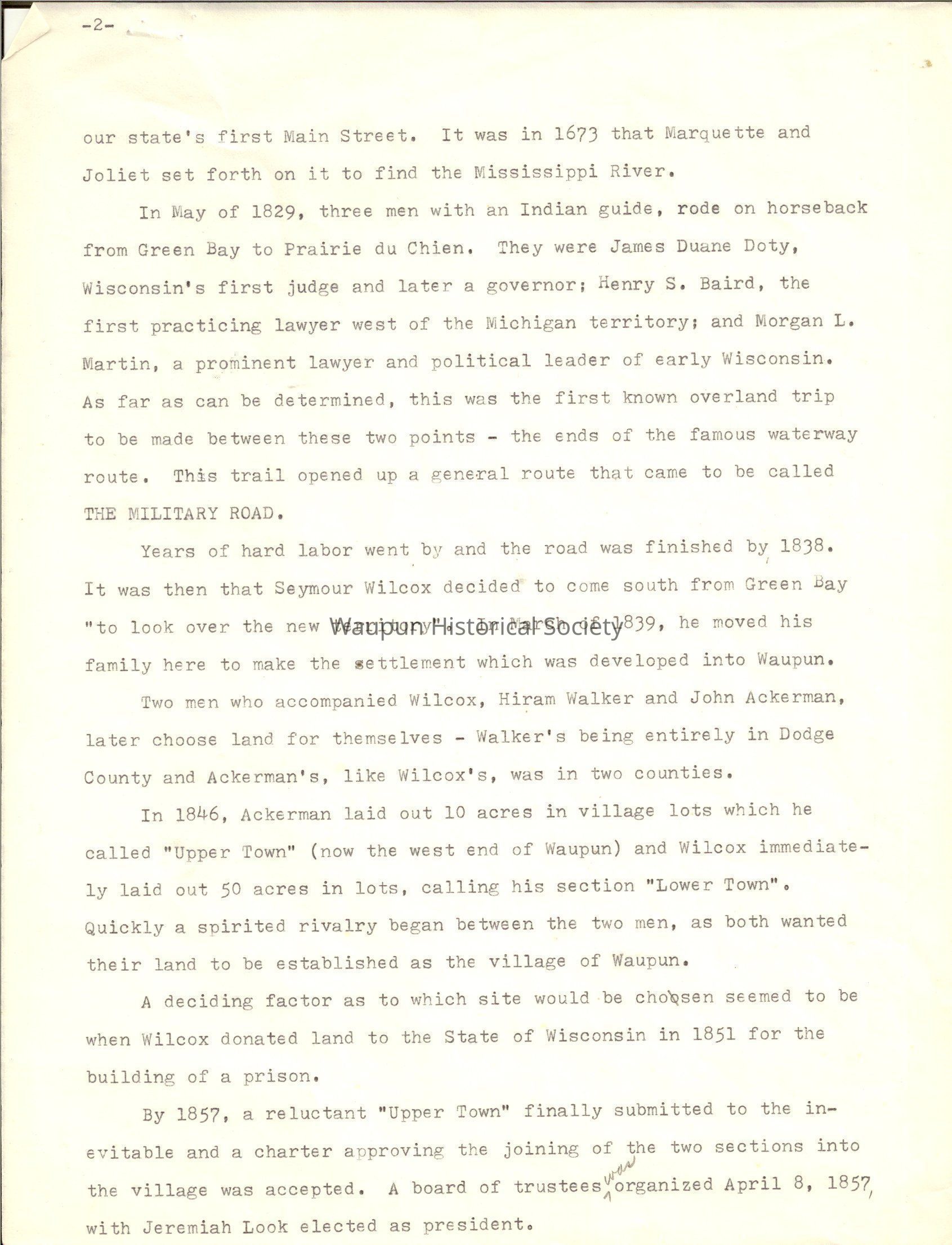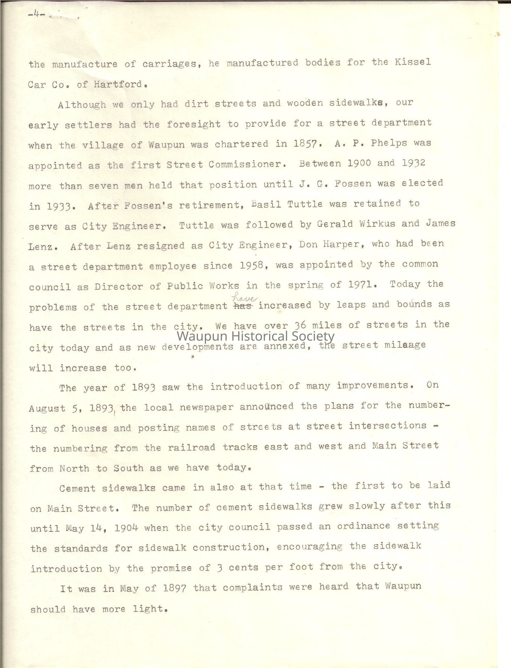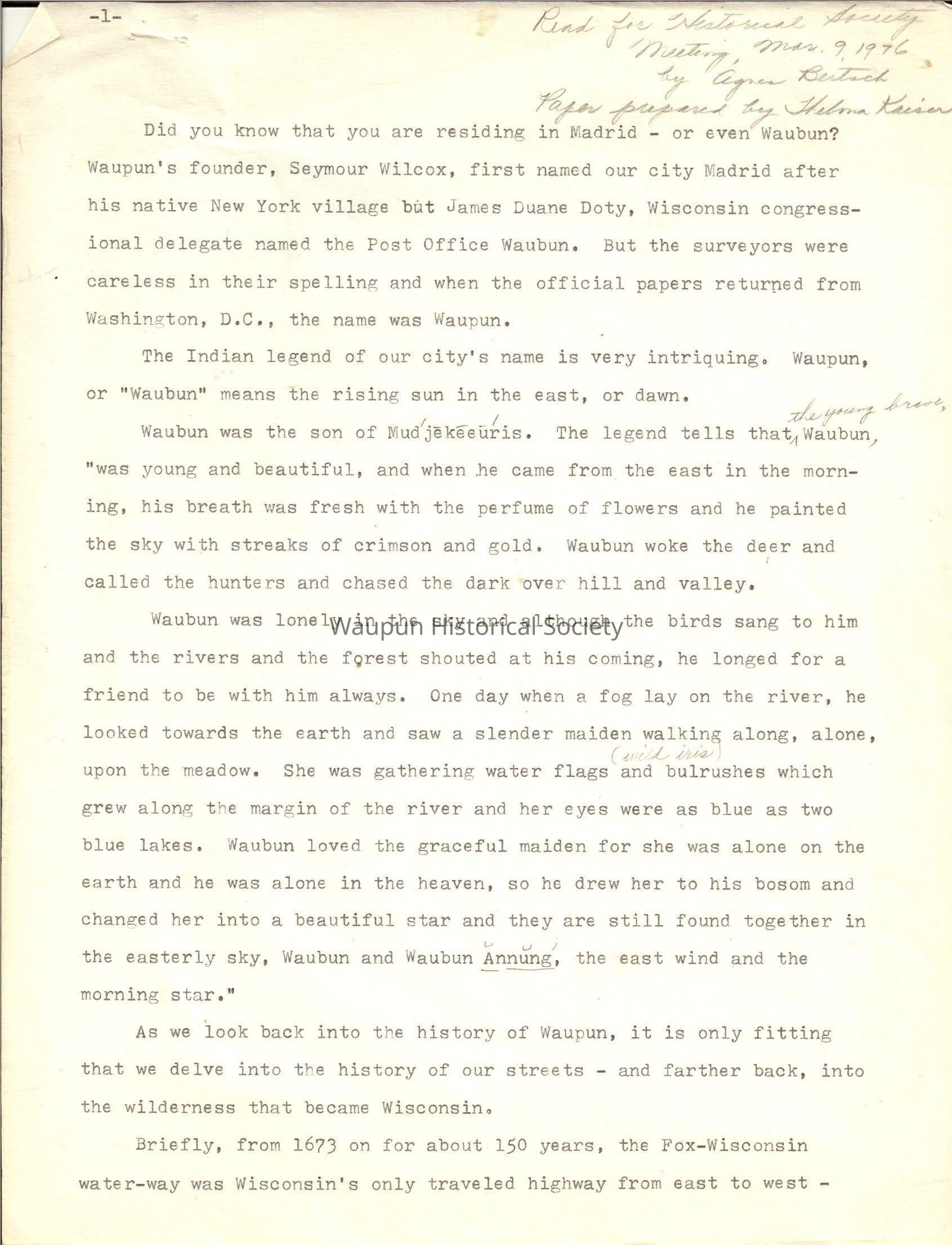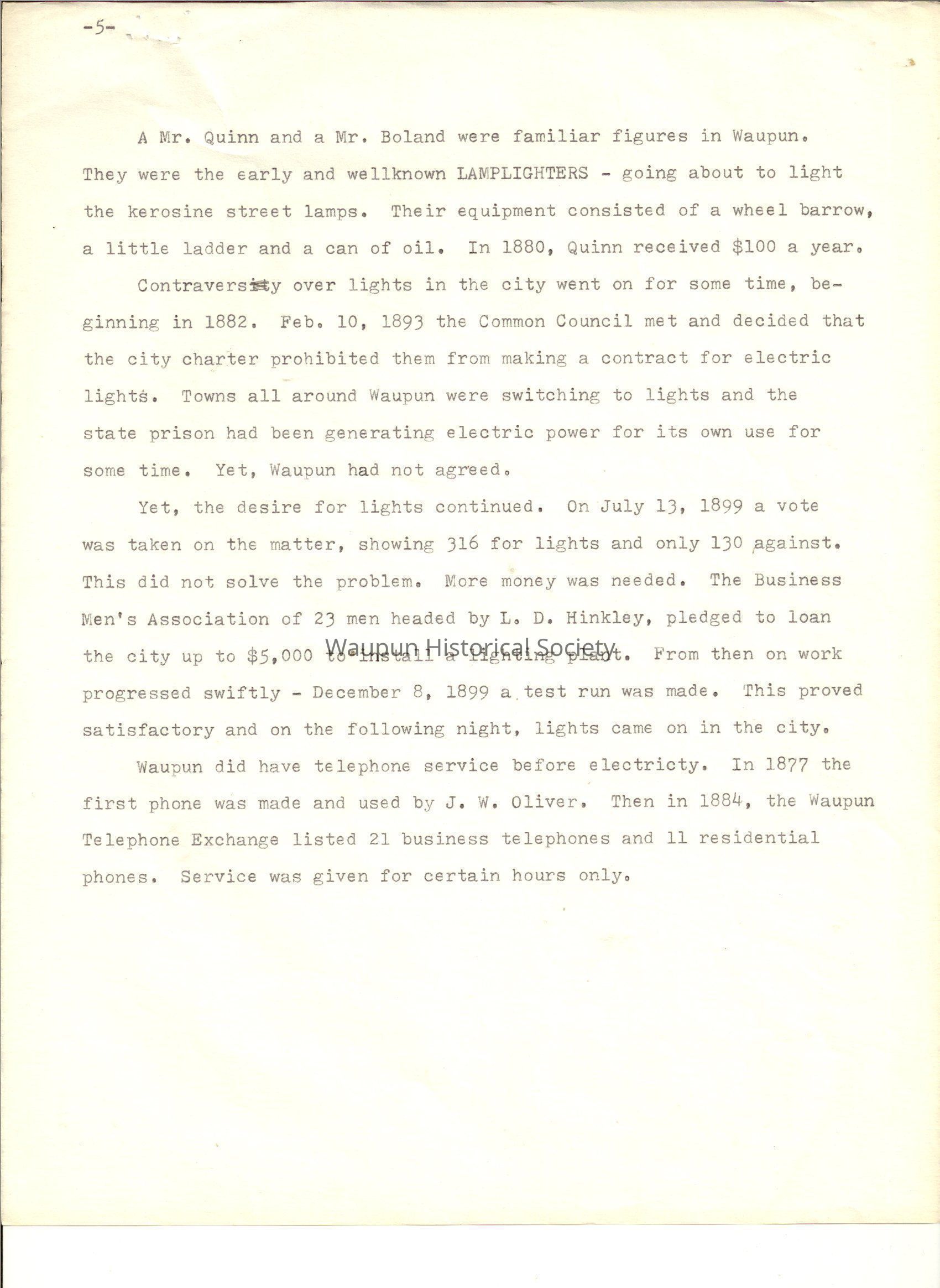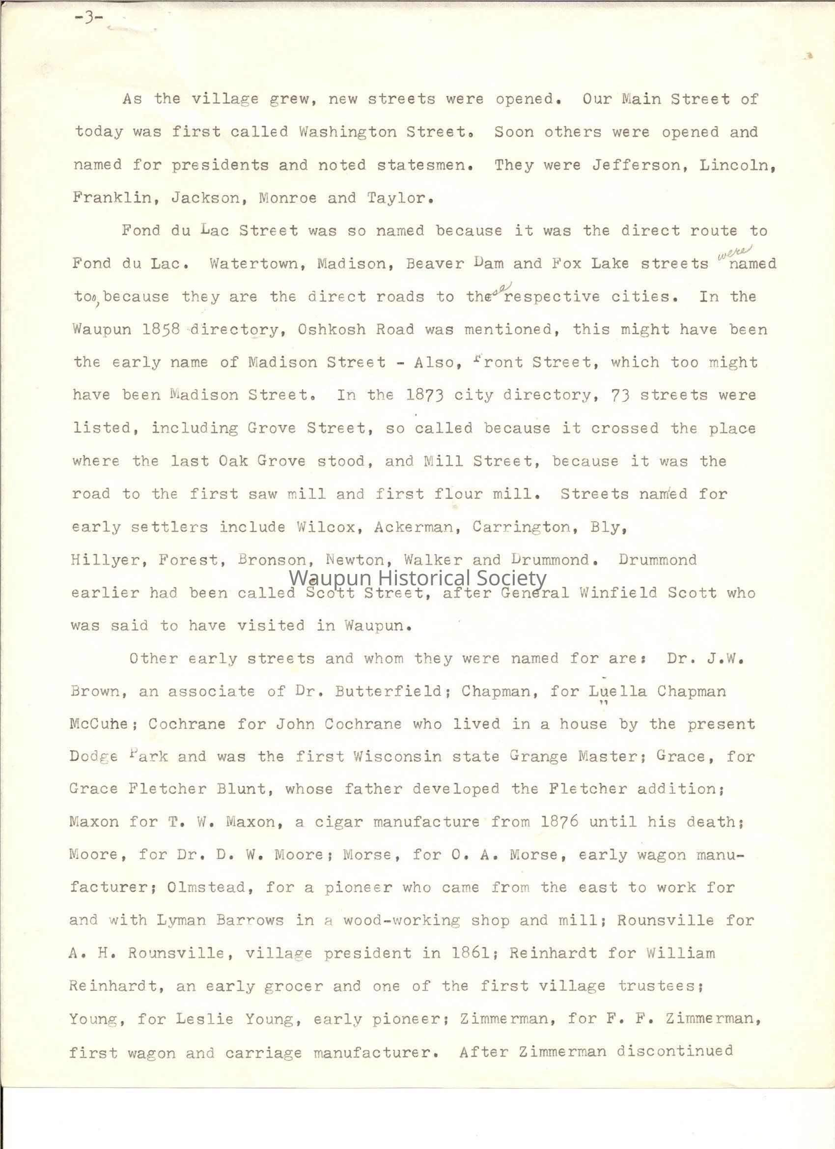 A Document Of How Waupun Got its Name and how the early settler name the street and when Waupun got its first electric and telephone and lightsAcquisition