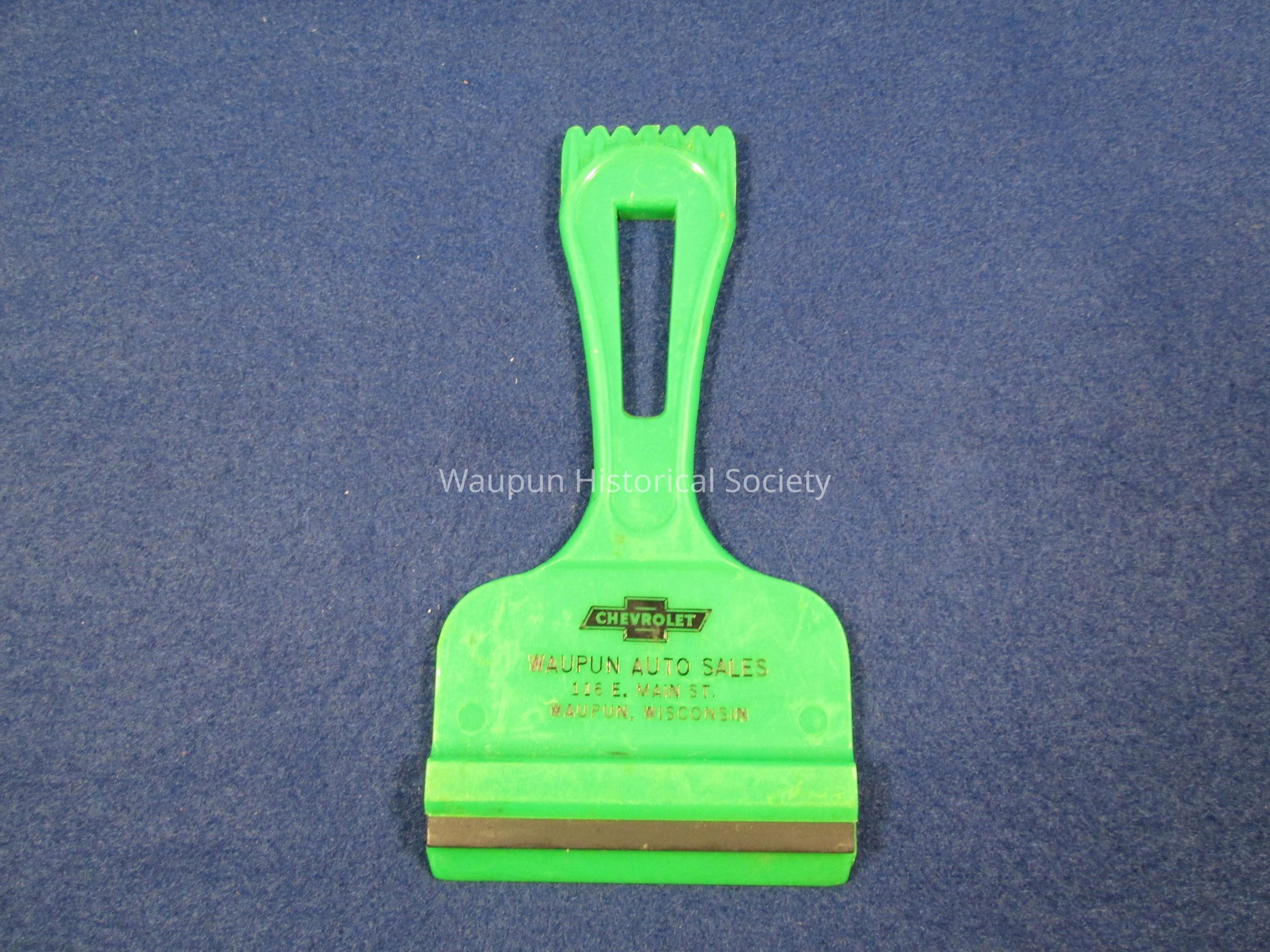 Chevrolet Waupun Auto Sales, 116 E. Main St., Waupun, Wisconsin advertising tool; a green colored car windshield ice scraper.Acquisition