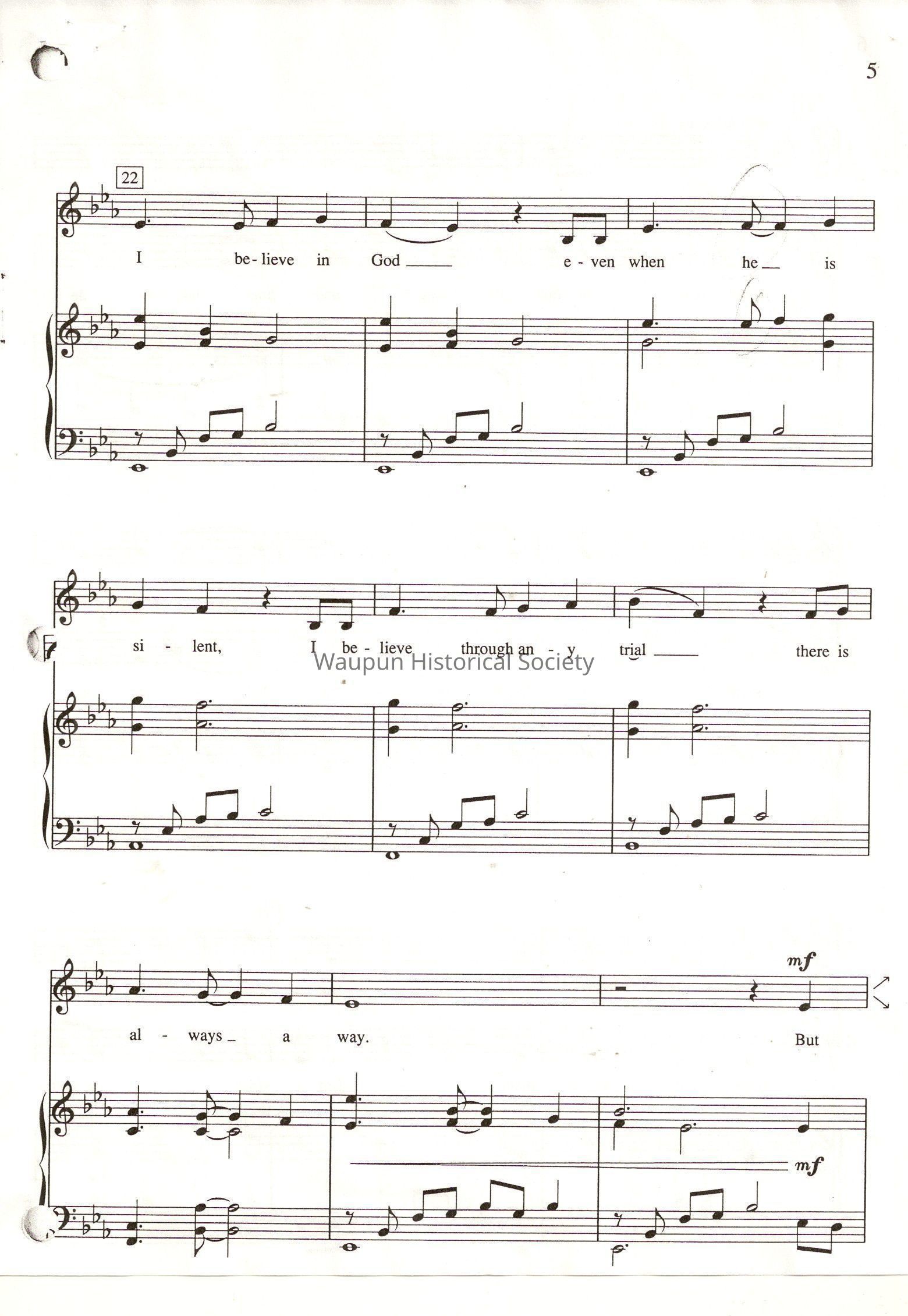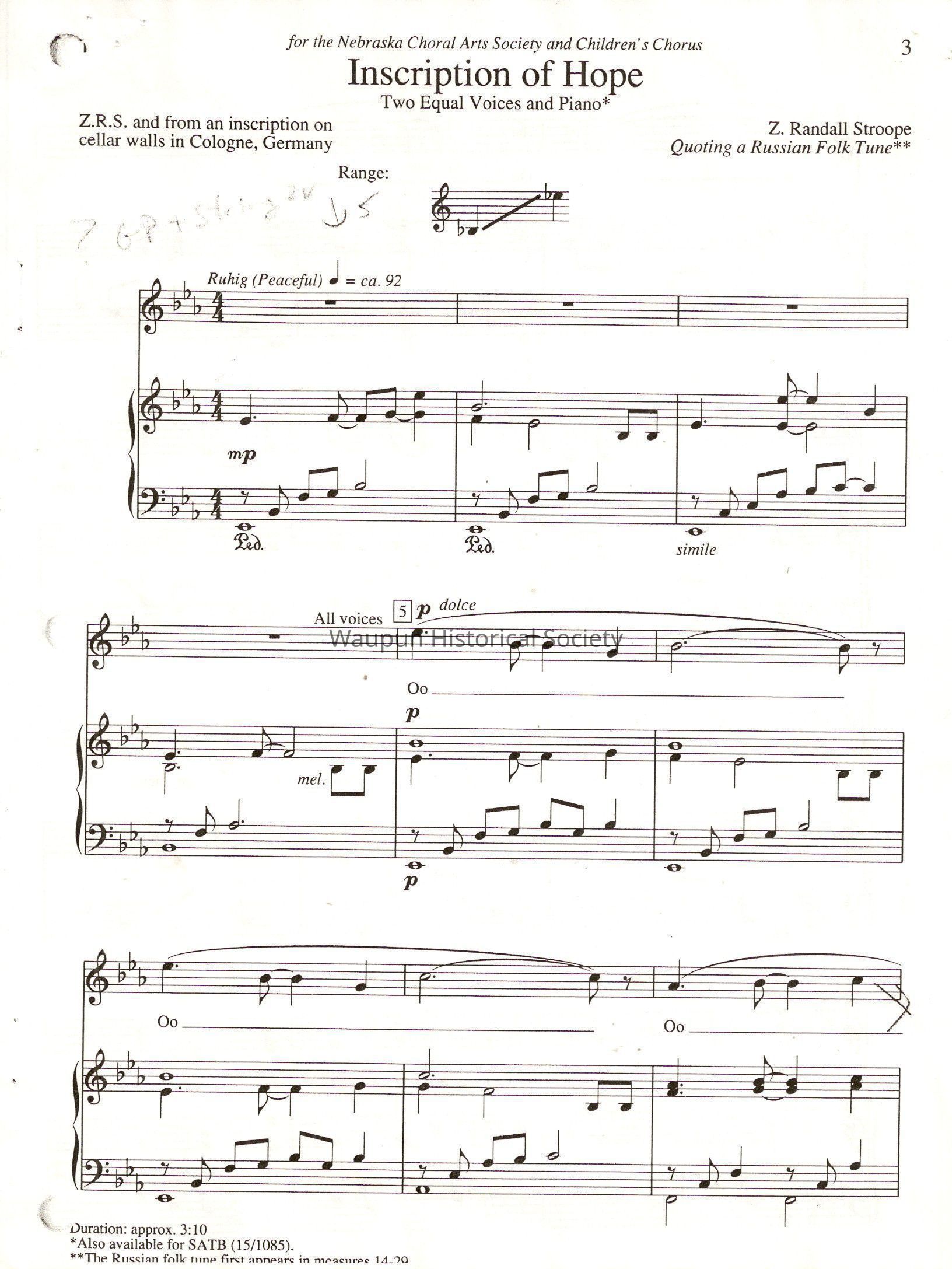 Eight pages of sheet music for "Inscription of Hope" are included.Acquisition