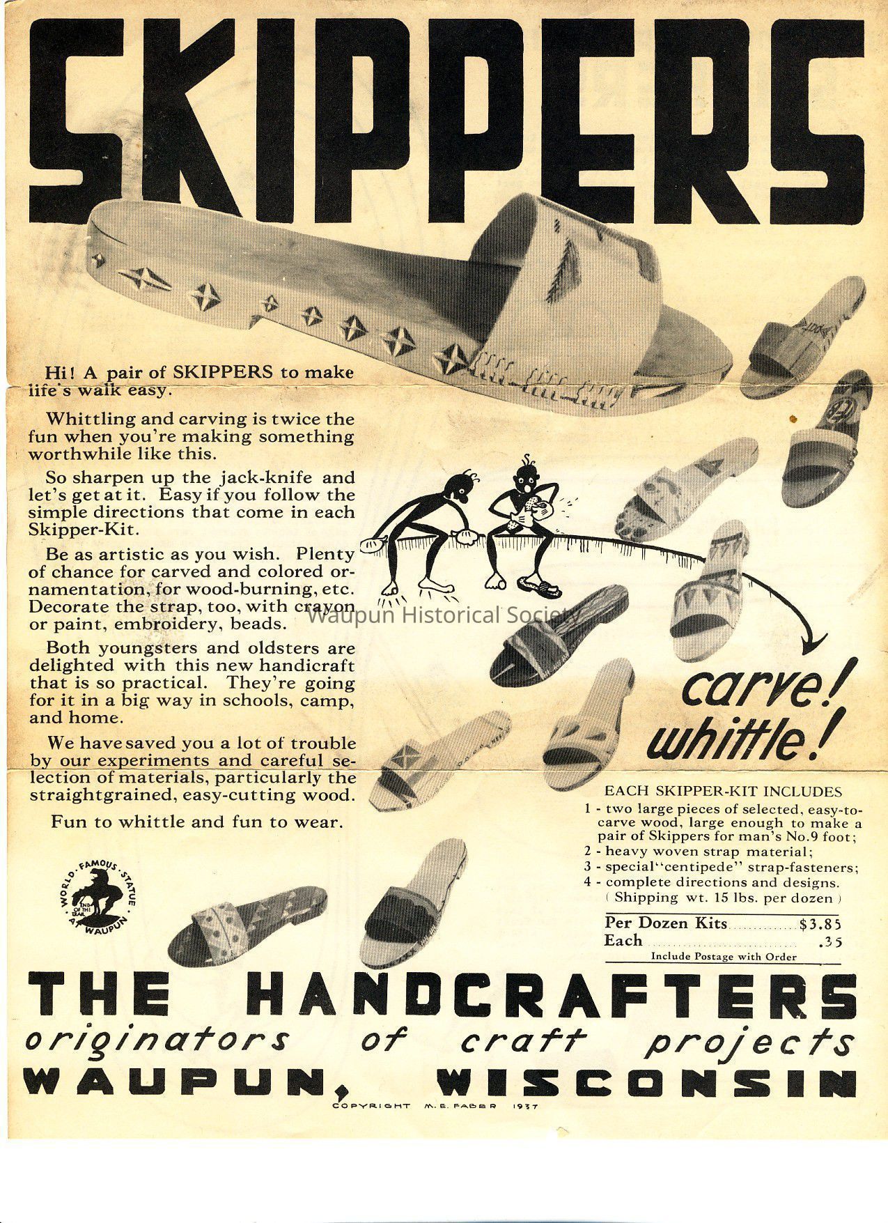 Instructions from The Handcrafters of Waupun for making Skippers. Handcrafters was a craft supply located in Waupun for many years.Acquisition
