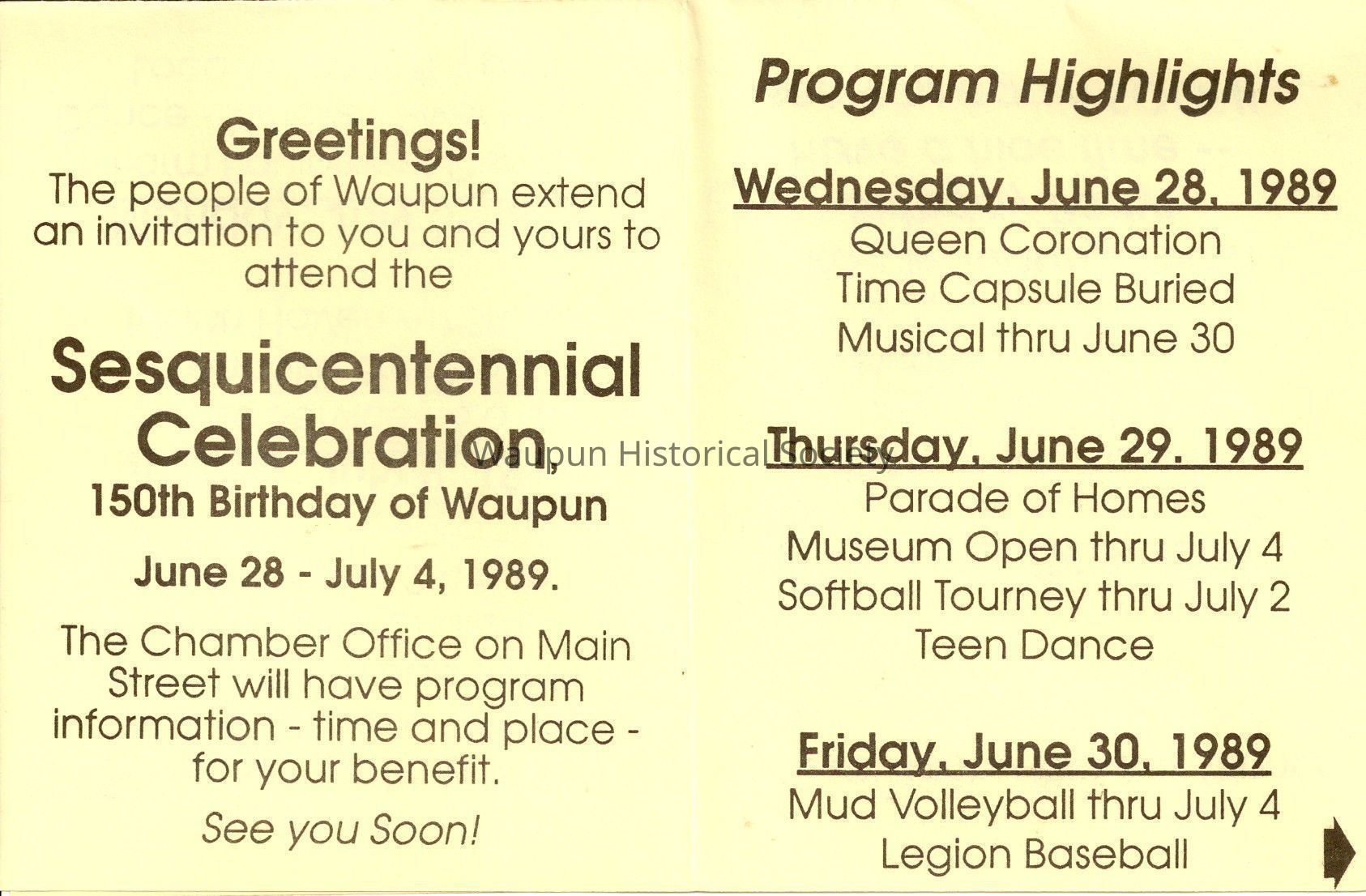 Sesquicentennial celebration of Waupun 150th ceremonyAcquisition