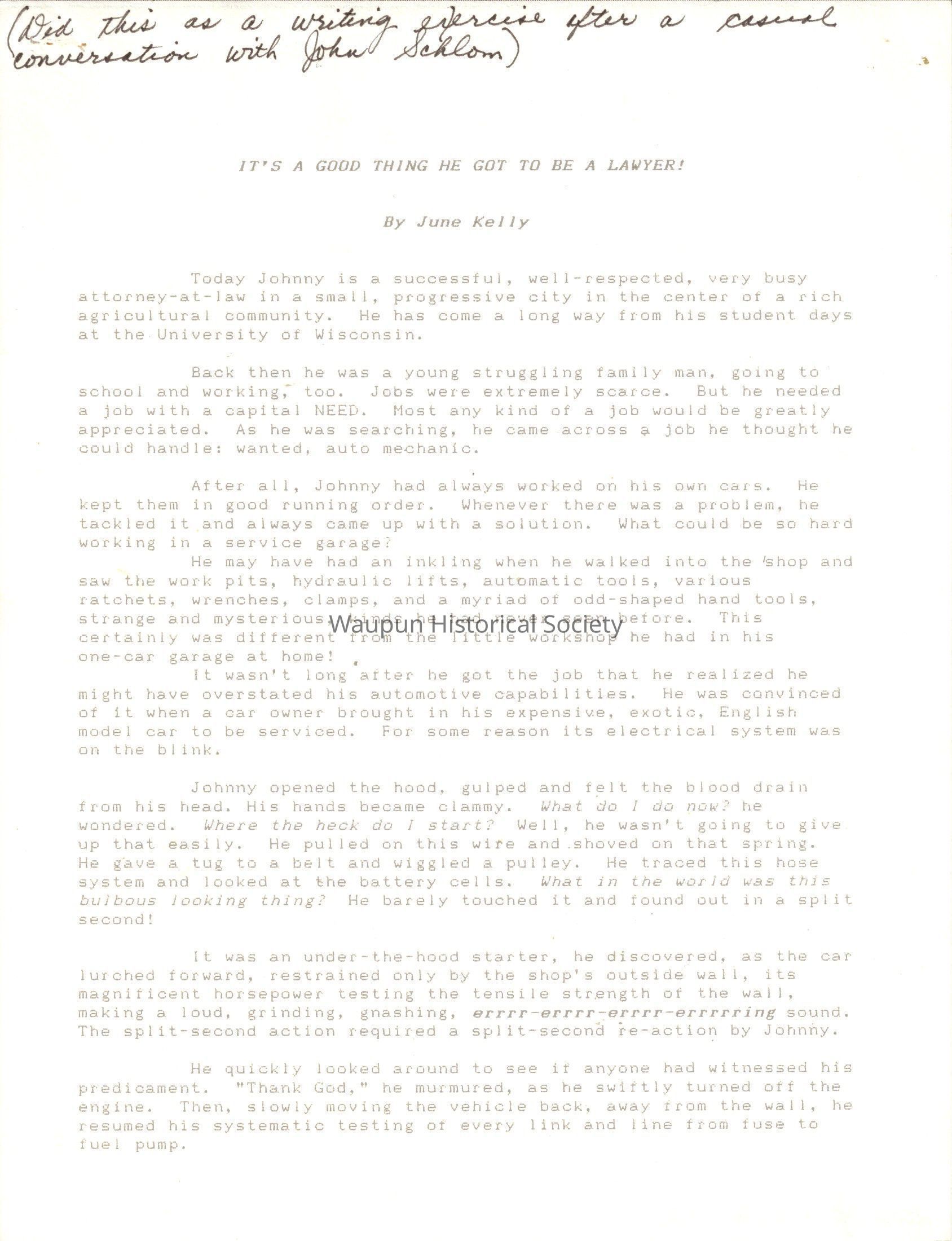 Poem, It's A Good Thing He Got To Be A Lawyer, June KellyEntry/Object ID