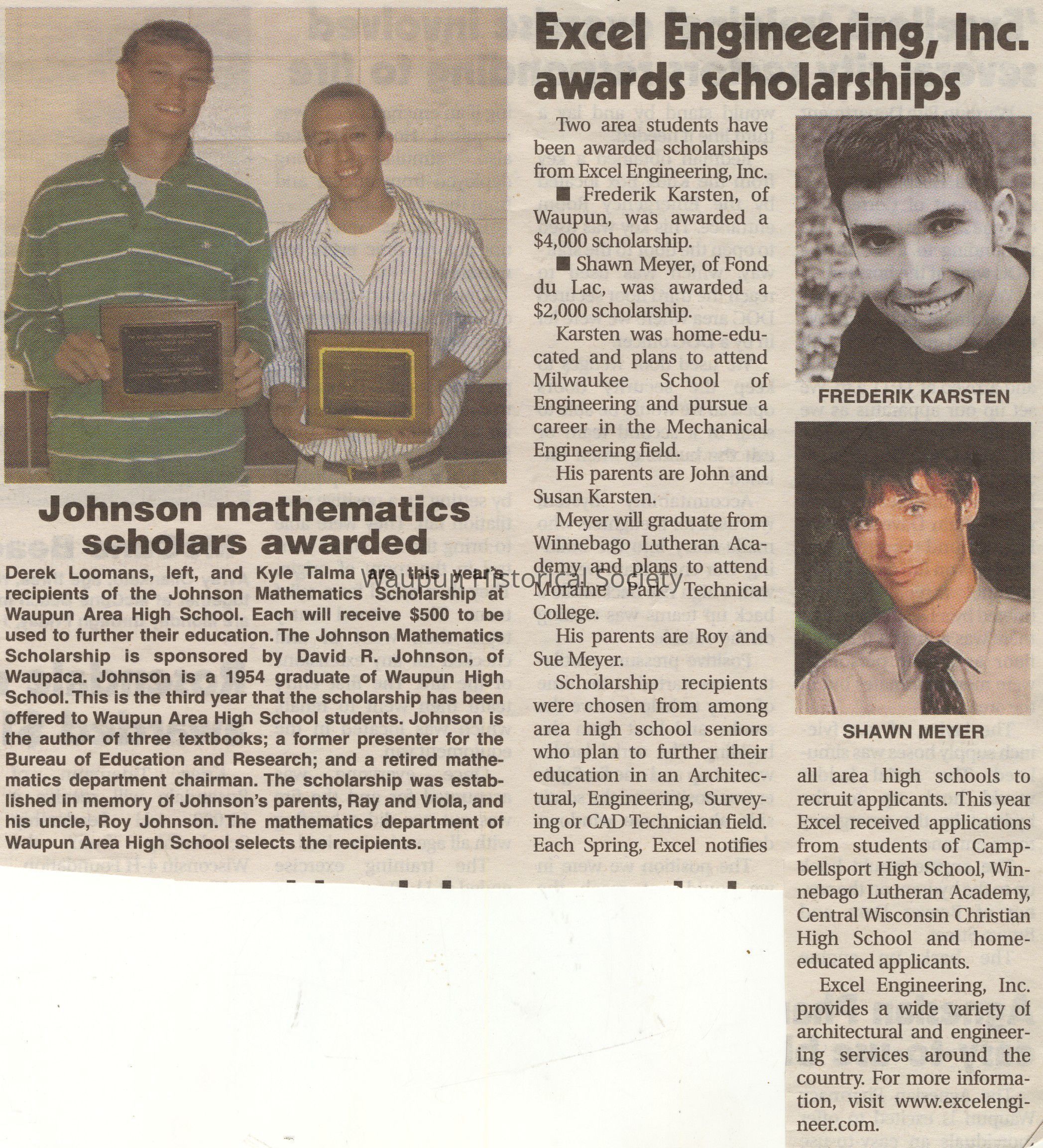 Johnson Math Scholars Awarded/ Excel Engineering, Inc. Scholarships from the Action Shopper June 30, 2010