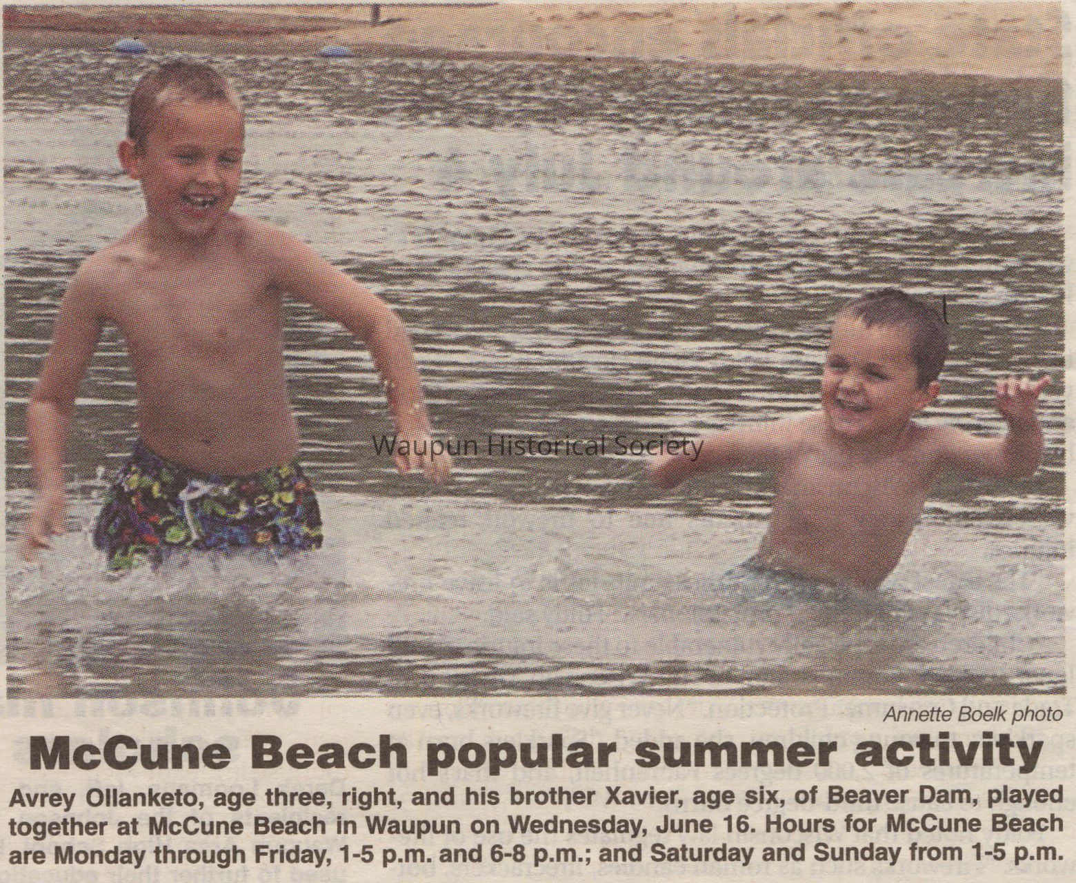 Avrey Ollanketo, age three, right, and his brother Xavier, age six, of Beaver Dam, played together at McCune Beach in Waupun on Wednesday, June 16. Hours for McCune Beach are Monday through Friday, 1-5 p.m. and 6-8 p.m.; and Saturday and Sunday from 1-5 p.m.