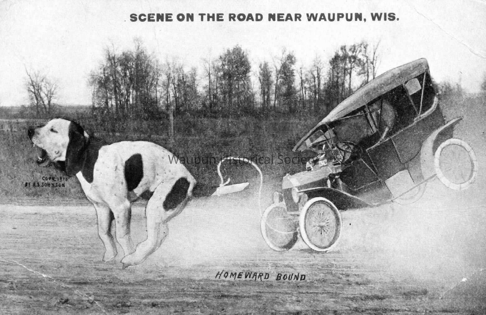 Johnson postcard, comic "Homeward Bound." Matches 2001.0001.0035 original picture.Acquisition