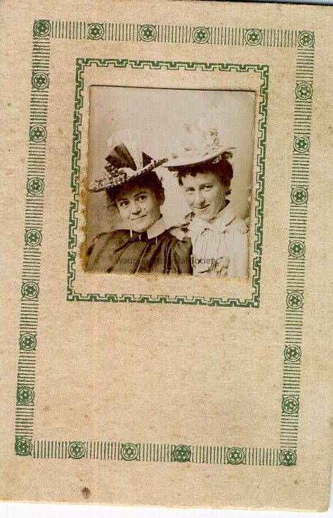 Johnson, Stanley, Mini Photo, Photograph of two unknown young ladies, probably late nineteenth century. Taken by Stanley Johnson. This was an advertising card which read: "Send any photograph or tin-type and 25 cents to Stanley Johnson's Ground Floor Photograph Gallery, Waupun, Wis., and he will return your picture and twenty-five pictures like this. Agents wanted in every town."