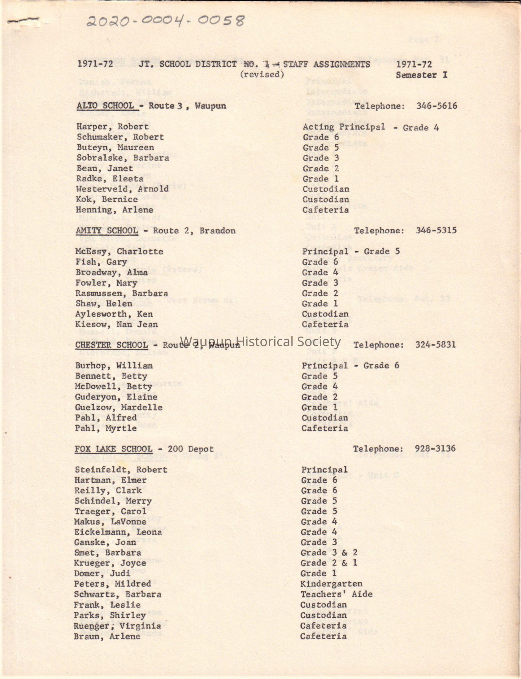 JT. School District No.1 Staff Assignment (1971-1972)Acquisition