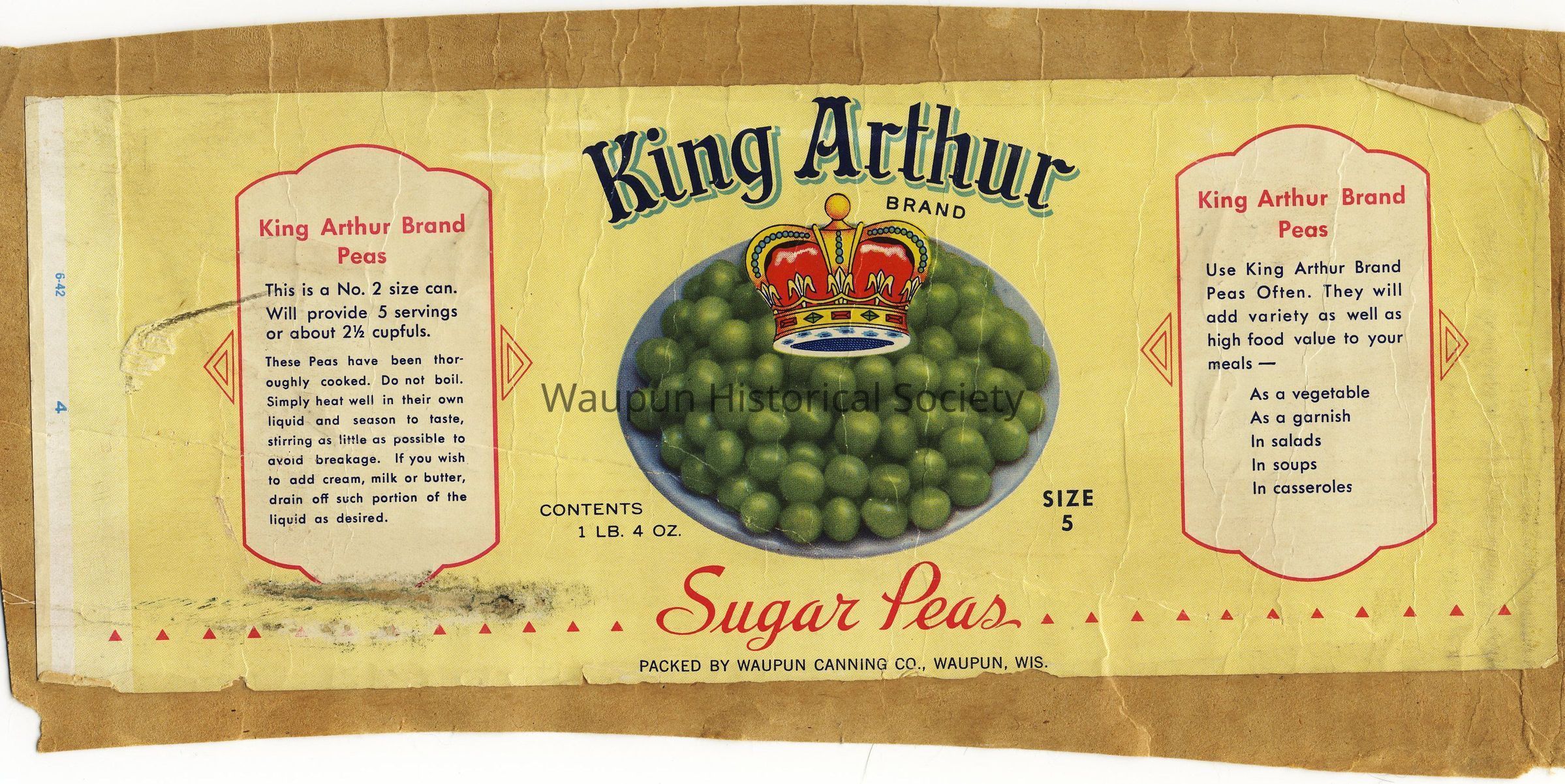 Canning Label, King Arthur Sugar Peas, Size 5, Waupun Canning CompanyEntry/Object ID