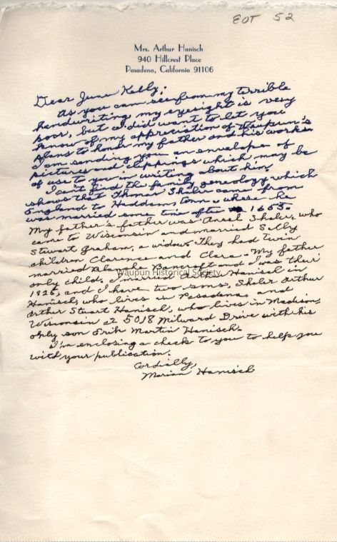 Letter and Envelope, Marian Hanisch to June Kelly