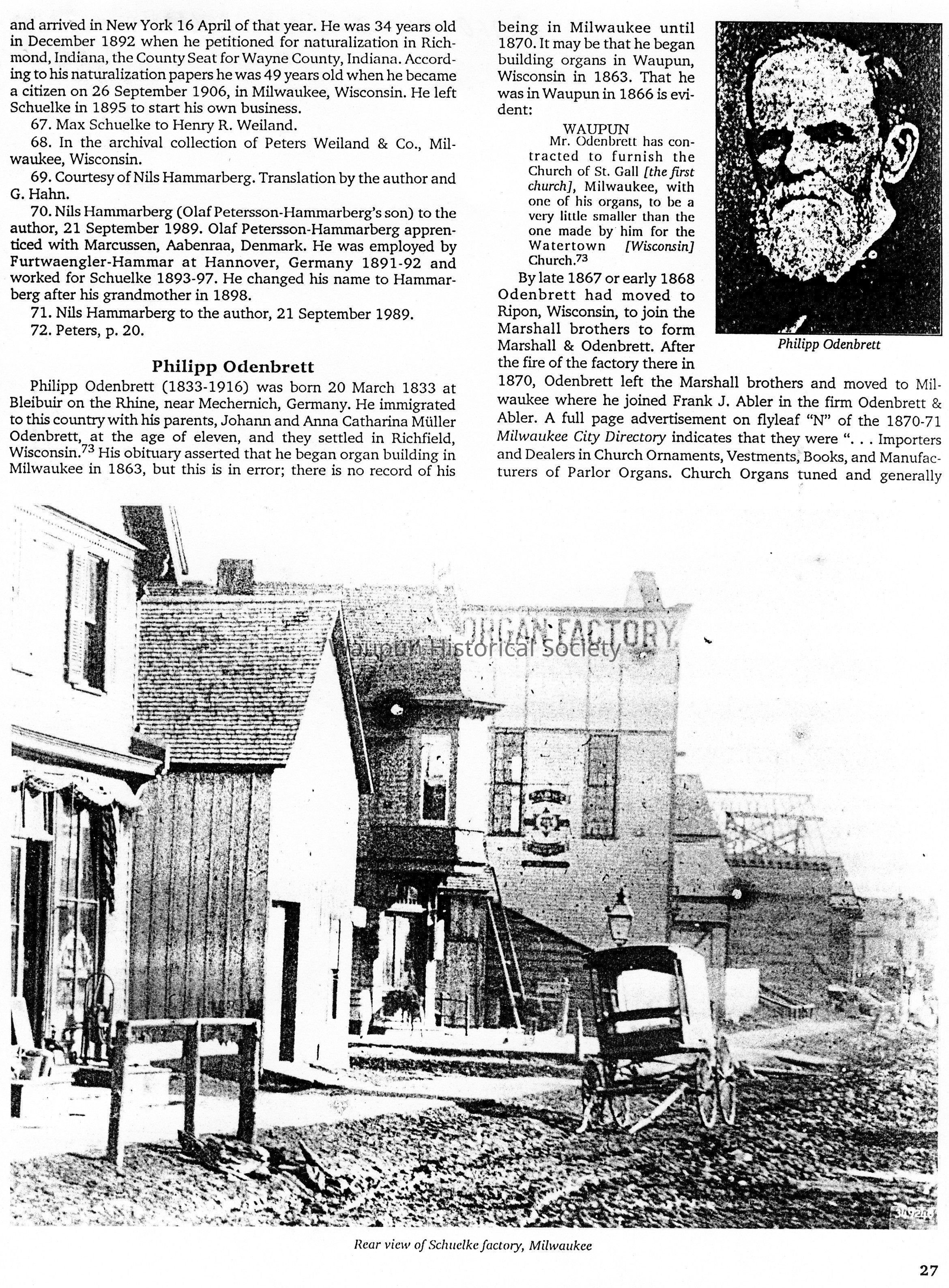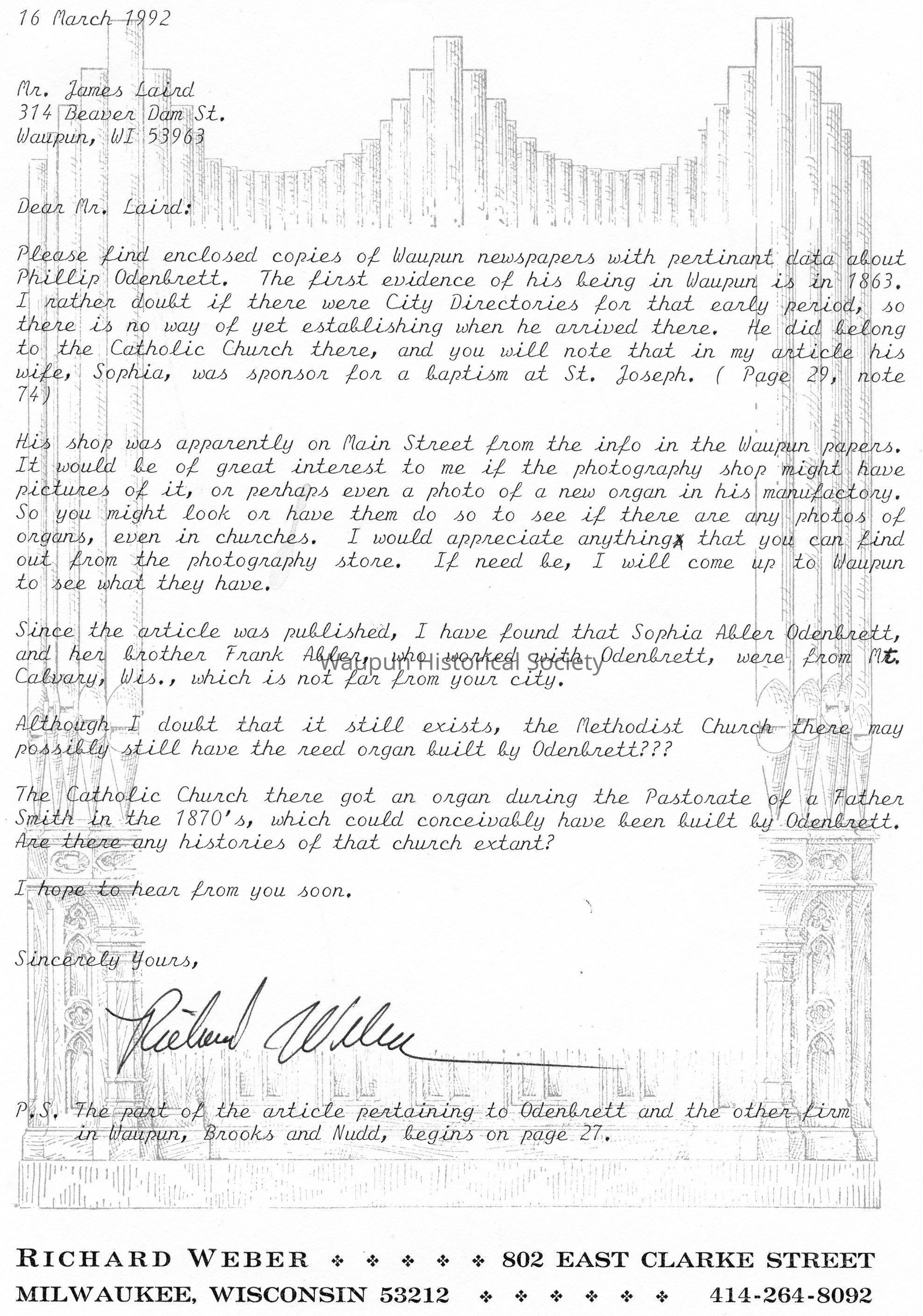Letter of Request/Brief History Of Philip Odenbrett Organ Business