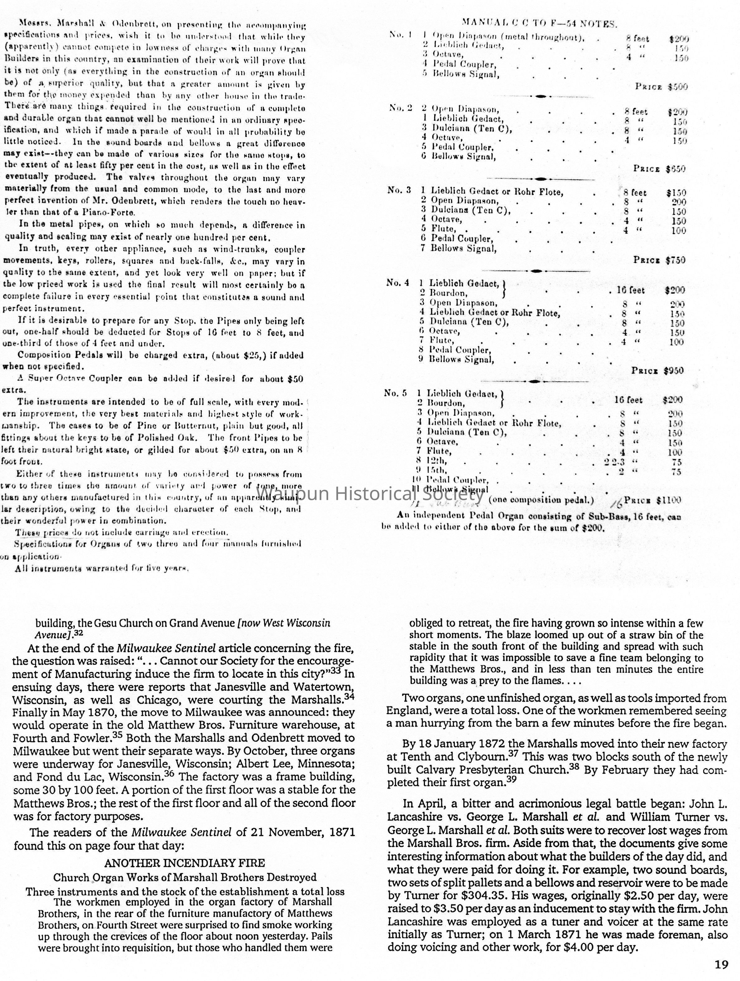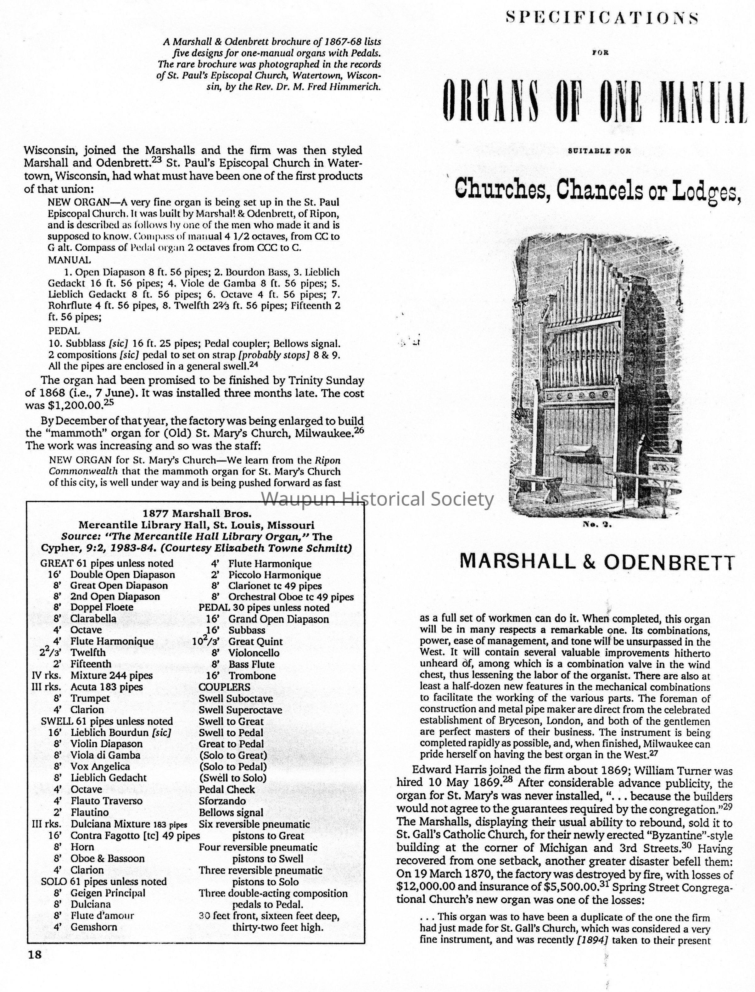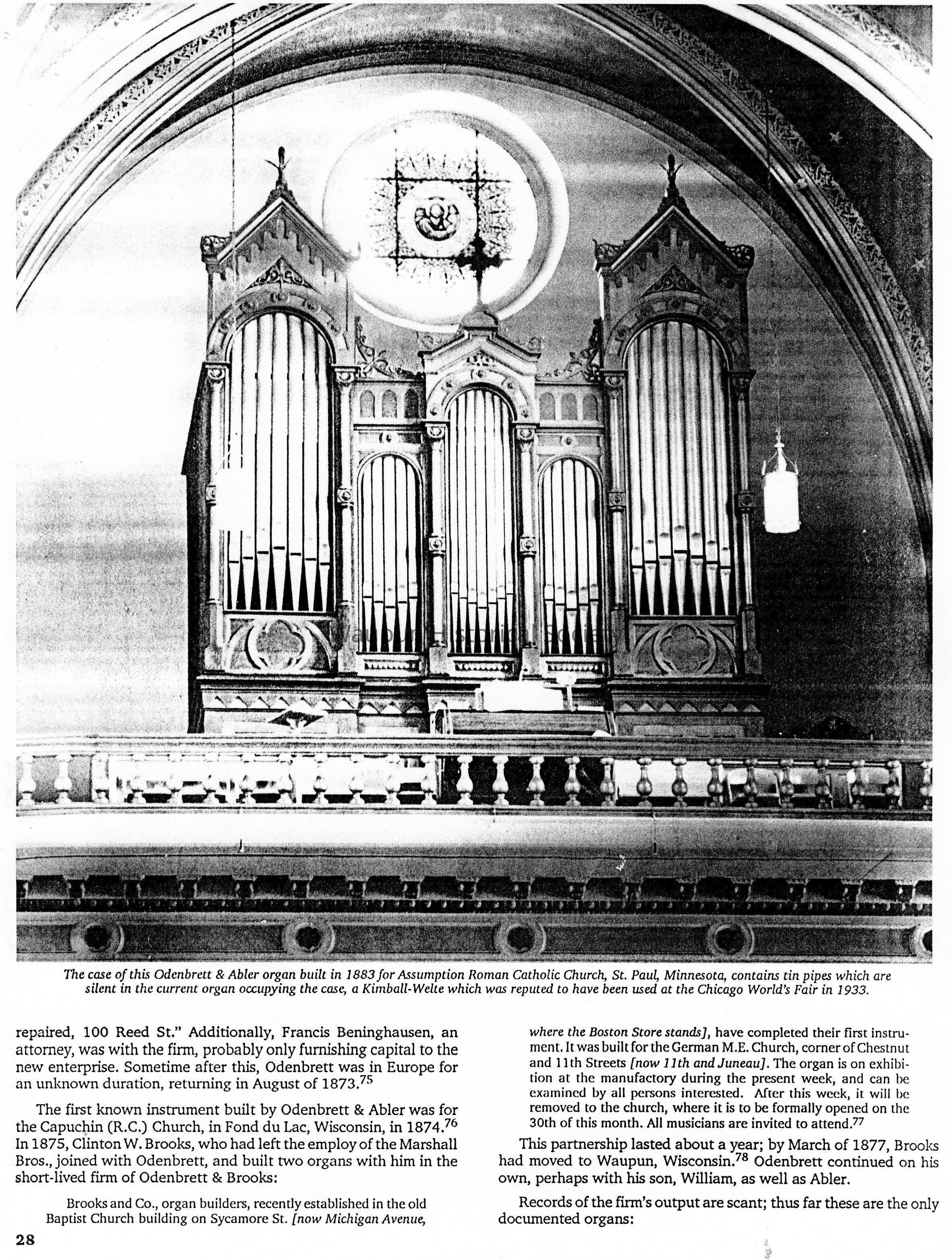 The Catholic Church there got an organ during the Pastorate of a Father Smith in the 1870's which could conceivably have been built by Odenbrett. Are there any histories of that church extant?