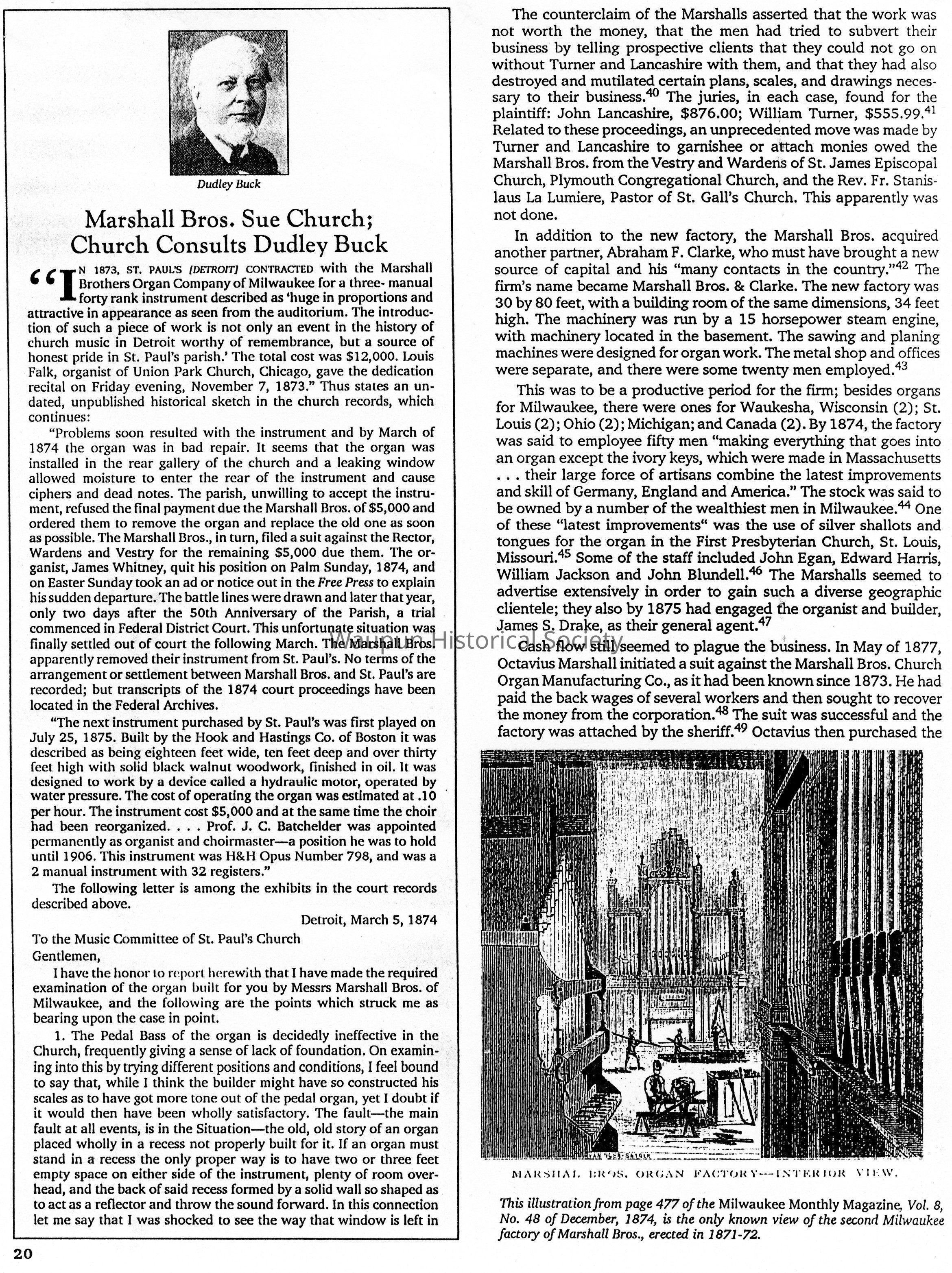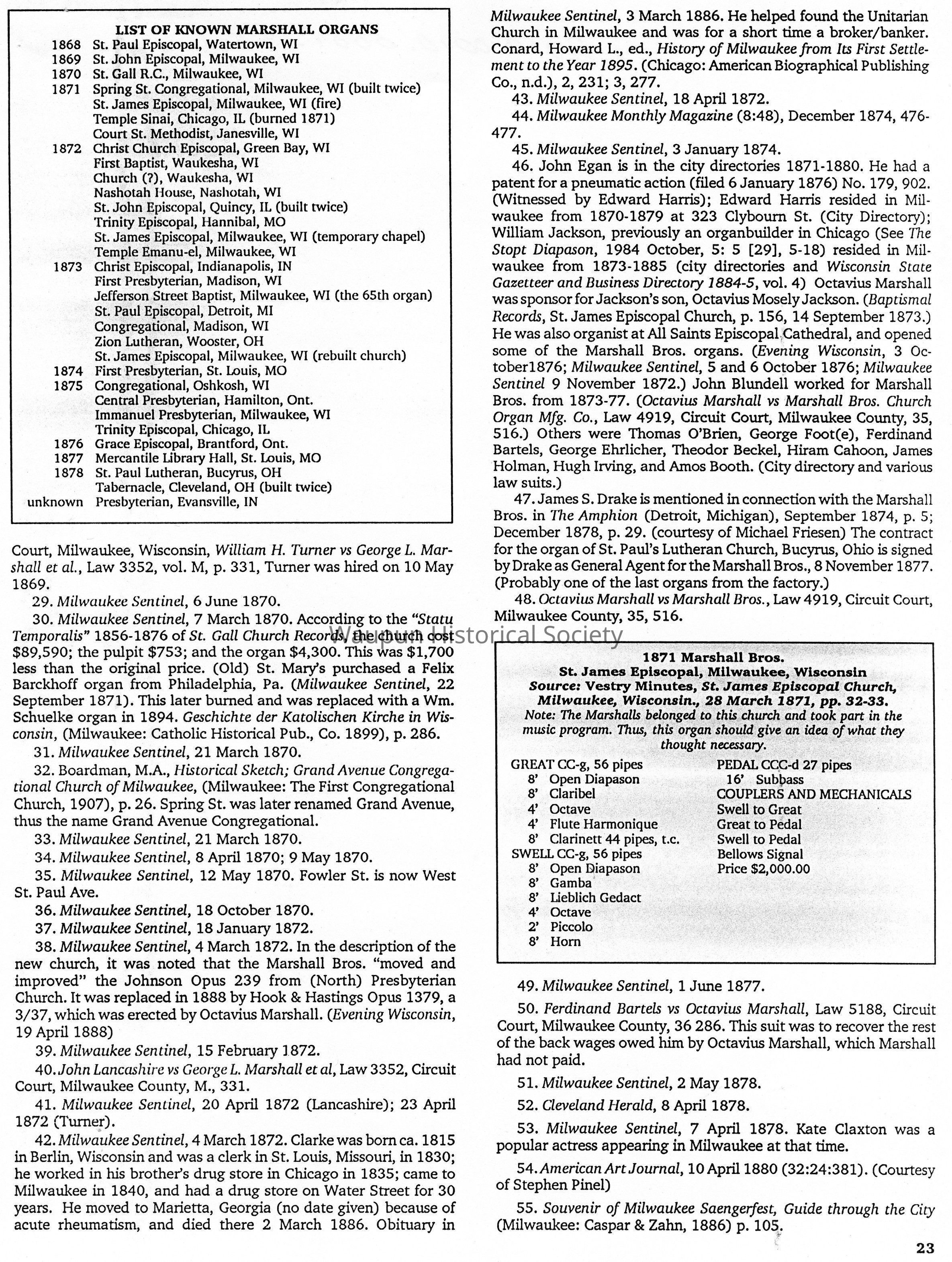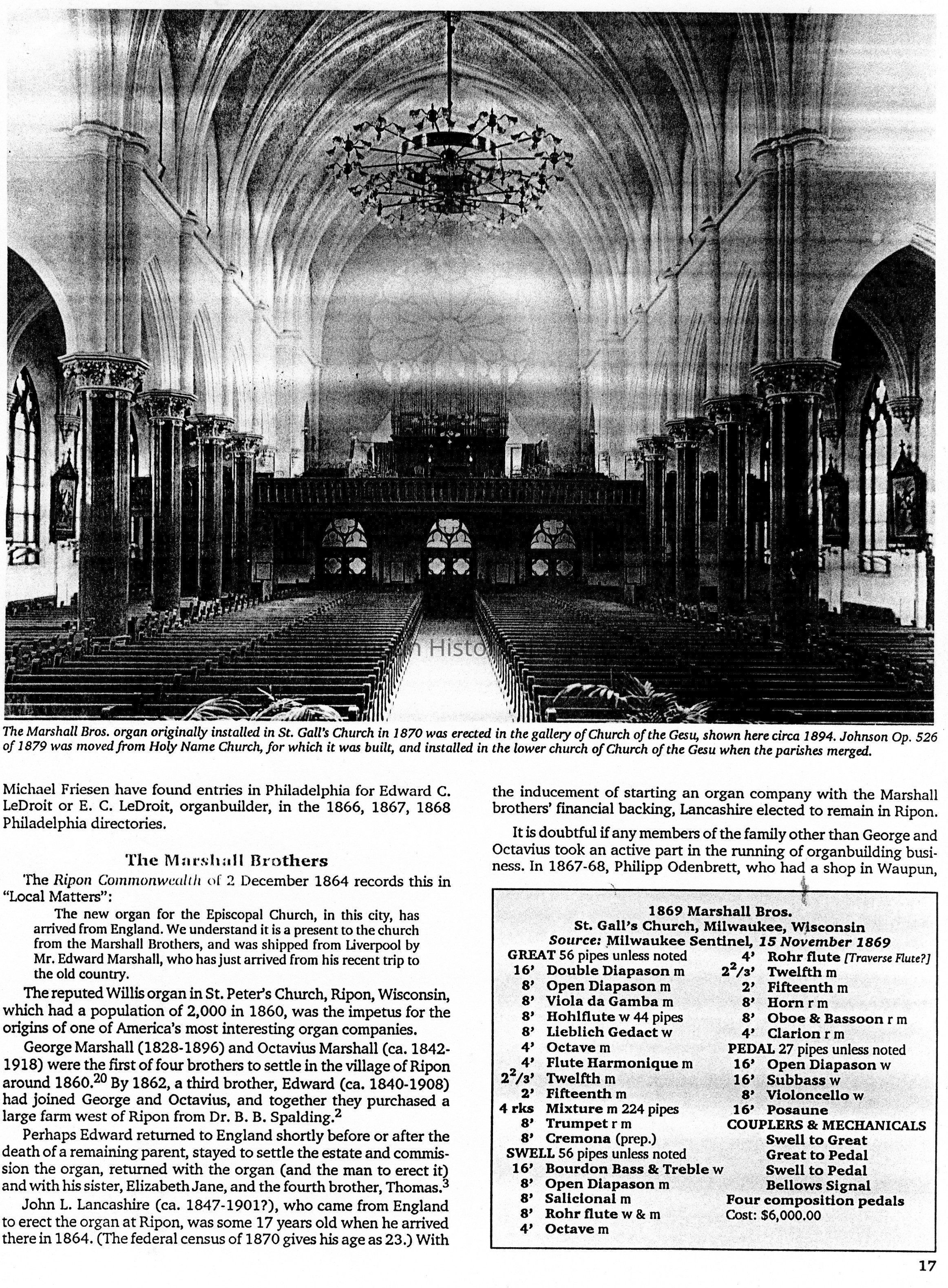 The Catholic Church there got an organ during the Pastorate of a Father Smith in the 1870's which could conceivably have been built by Odenbrett. Are there any histories of that church extant?