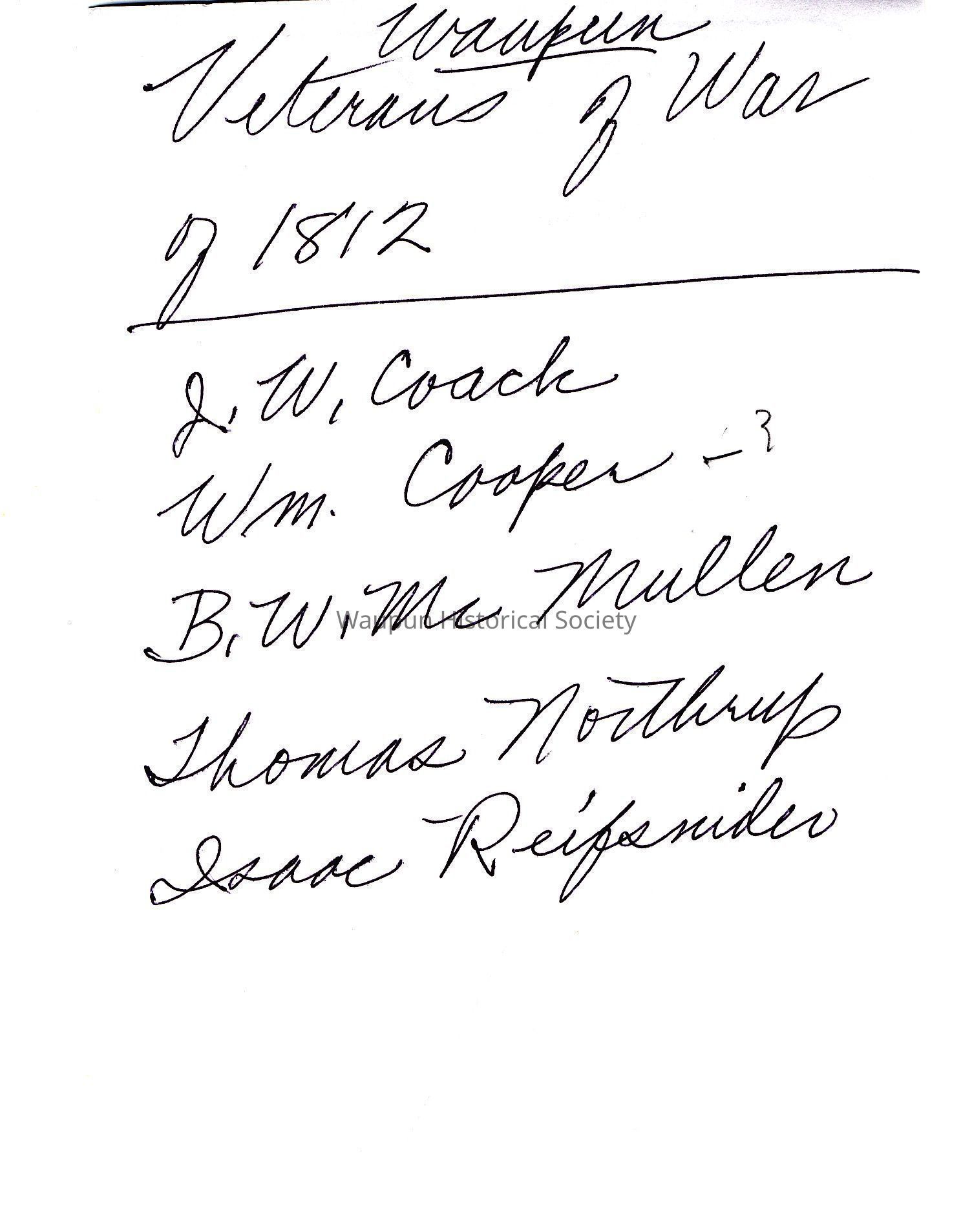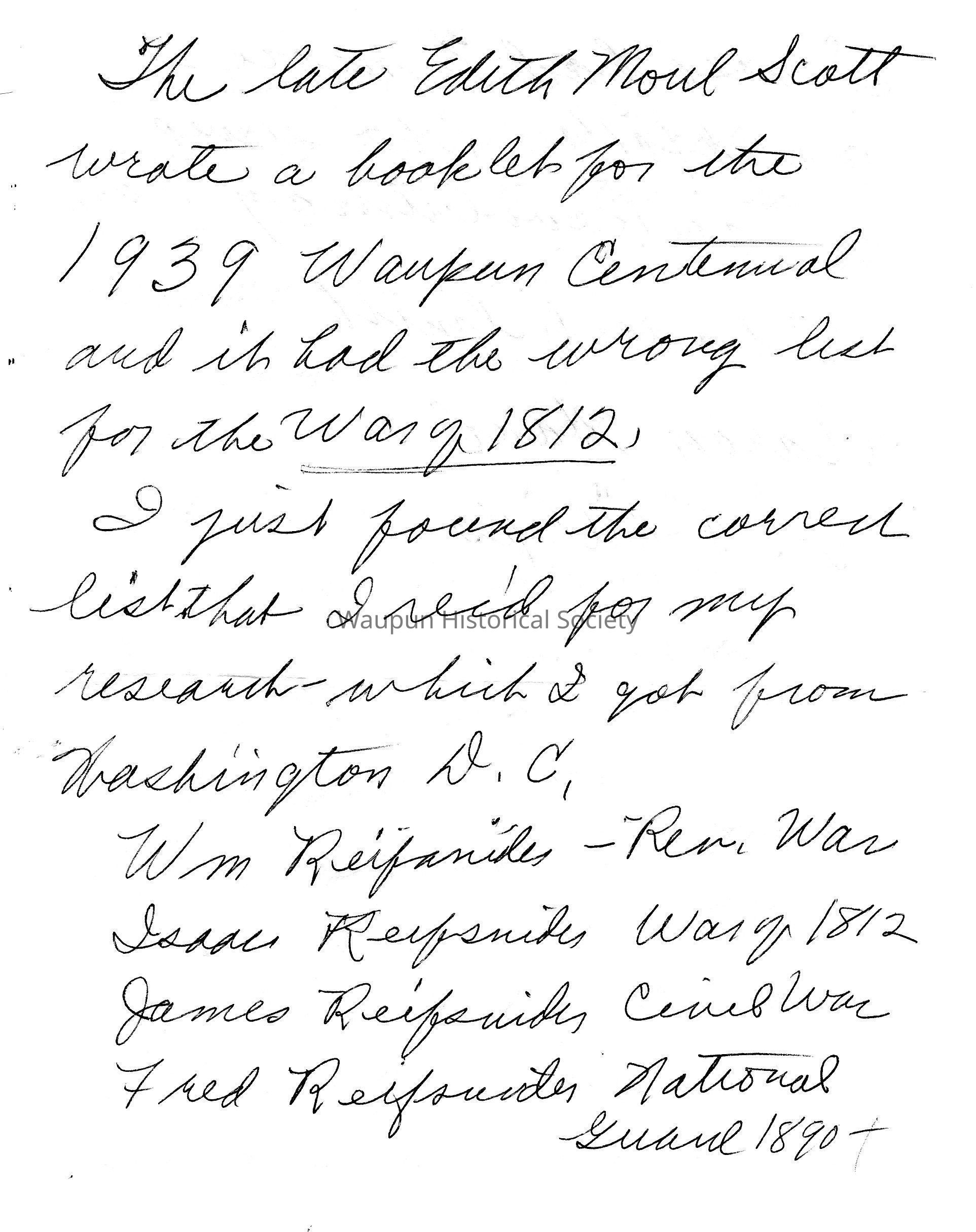 The late Edith Moul Scott wrote a booklet for the 1939 Waupun Centennial and it had the wrong list for the War of 1812.
