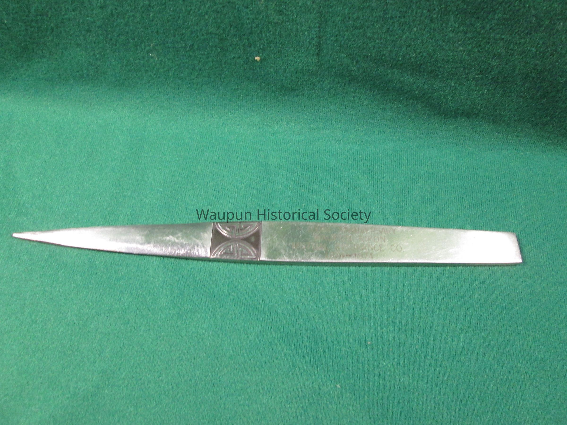 Letter Opener, Waupun-Ripon Mutual Insurance Co., 100th AnniversaryEntry/Object ID