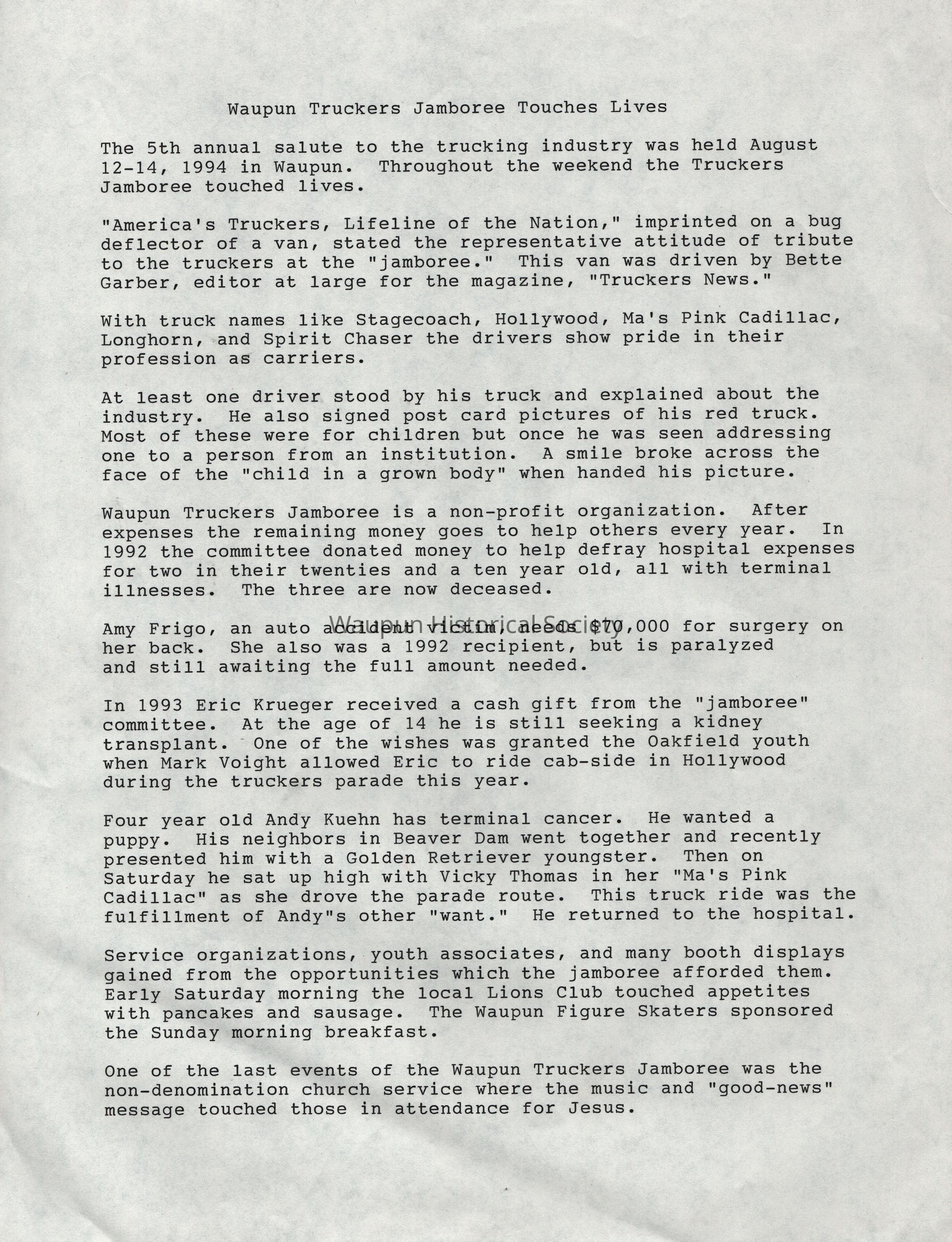Letter, Touches Lives, Truckers Jamboree