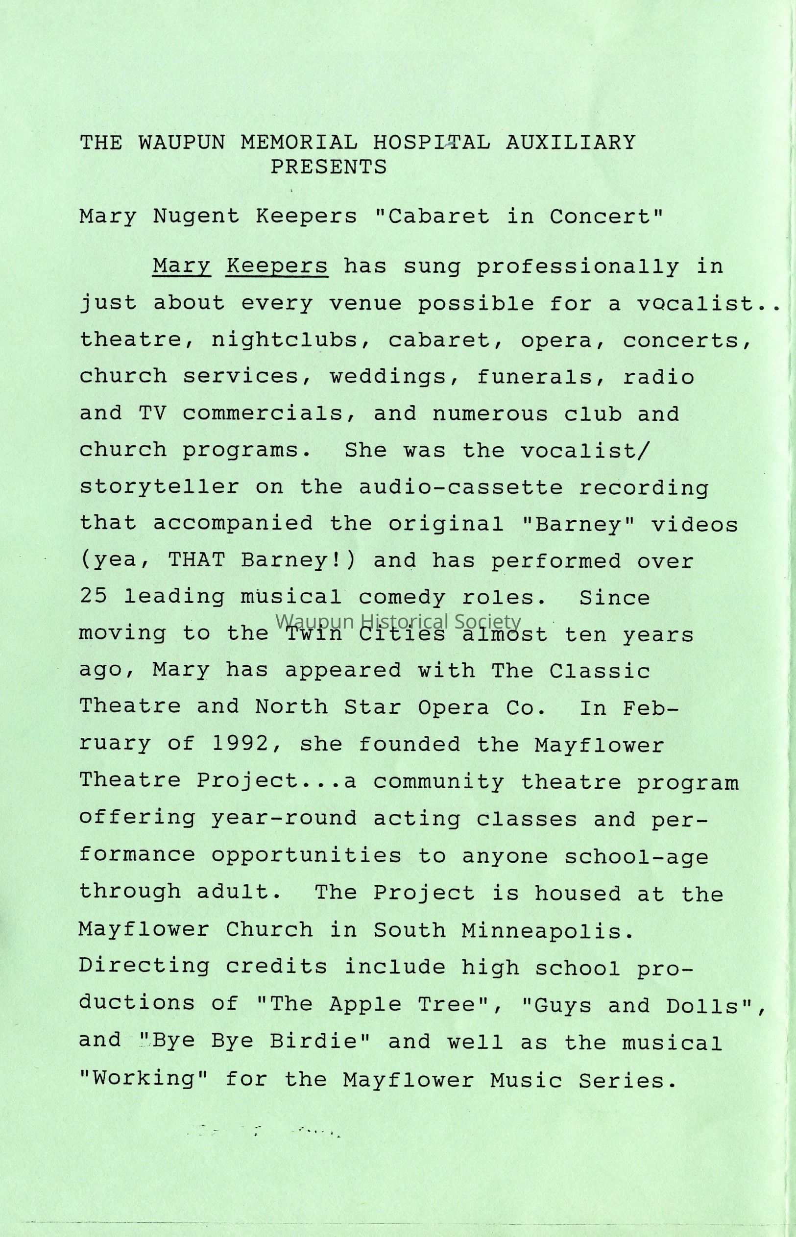 Mary Nugent Keepers "Cabaret in Concert"