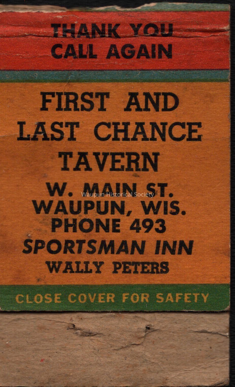 Matchbook, First and Last Chance Tavern
