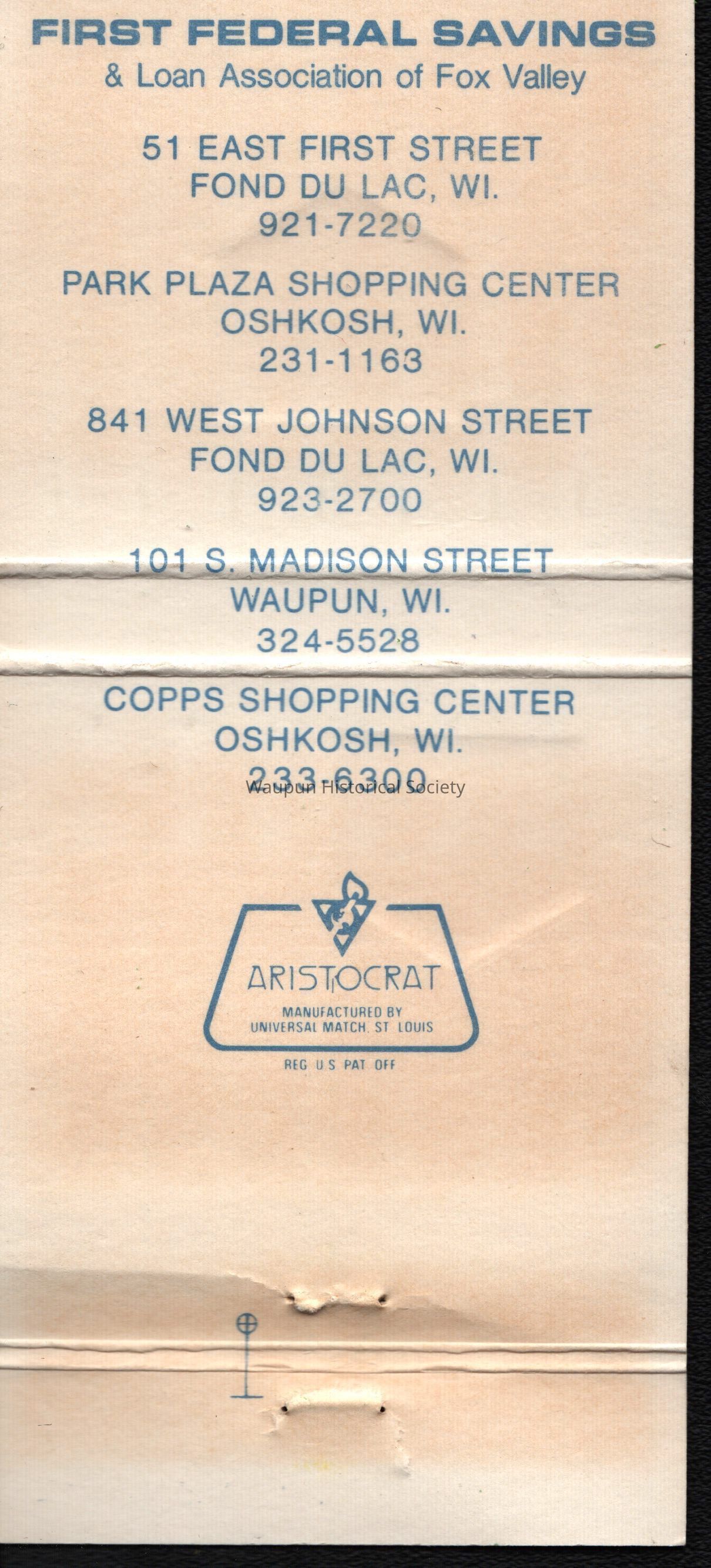 Matchbook, First Federal Savings & Loan Association of Fox ValleyEntry/Object ID