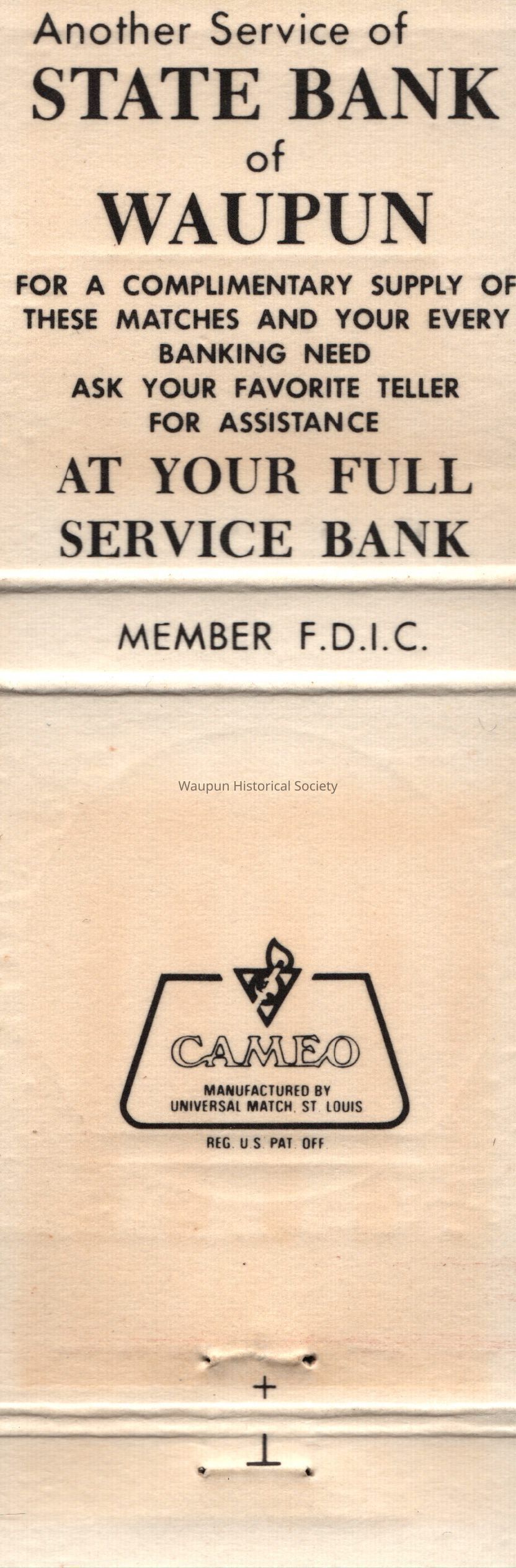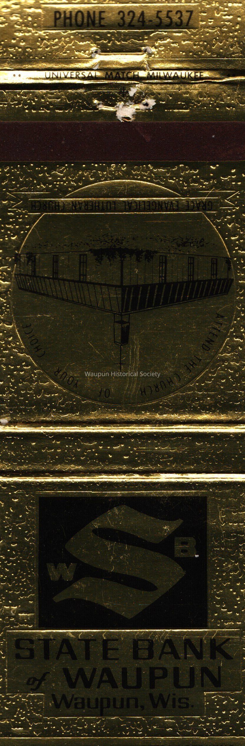 Matchbook, State Bank, Grace Evangelical Lutheran Church