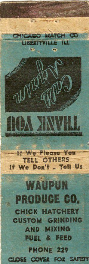 Waupun Produce Co. Matchbook.