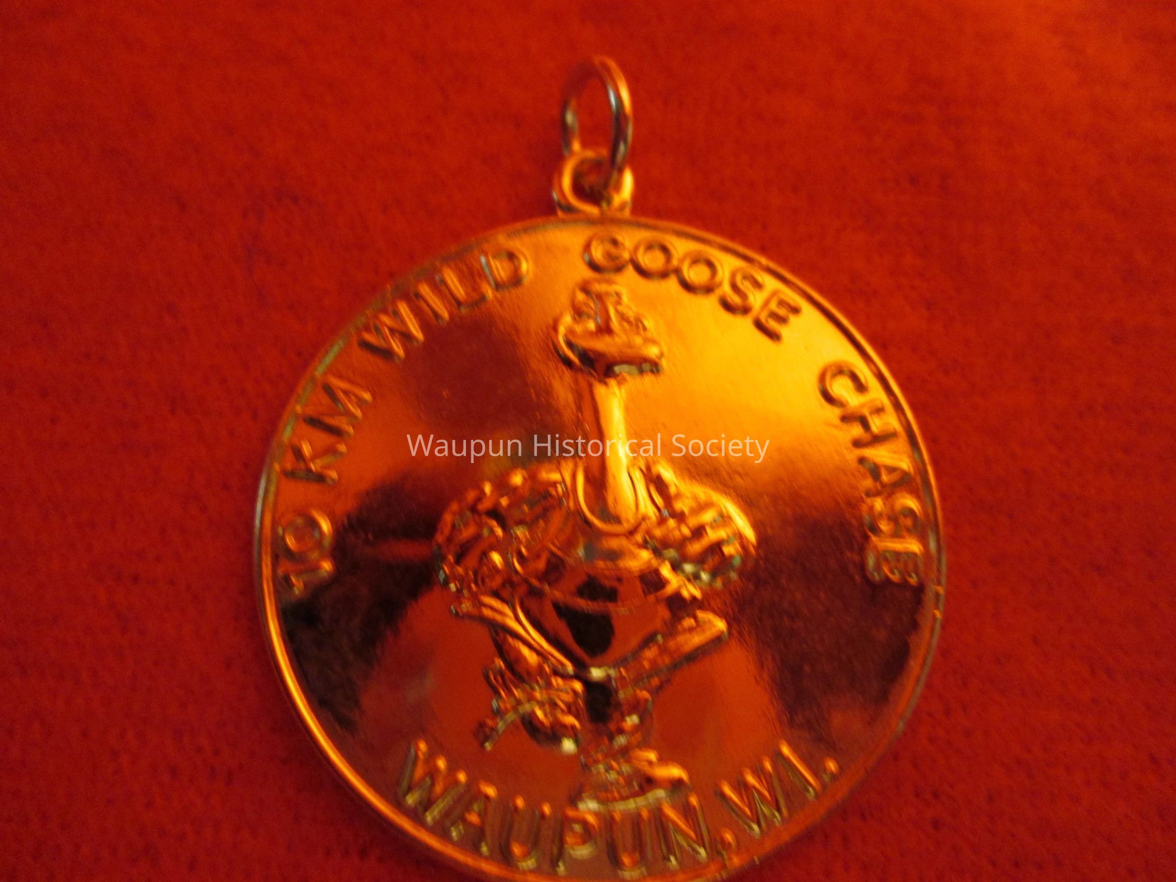 Commemorative Medalion of 10 KM wild Goose chase from Waupun WI. Gold in Color with a picture of a goose running.Acquisition