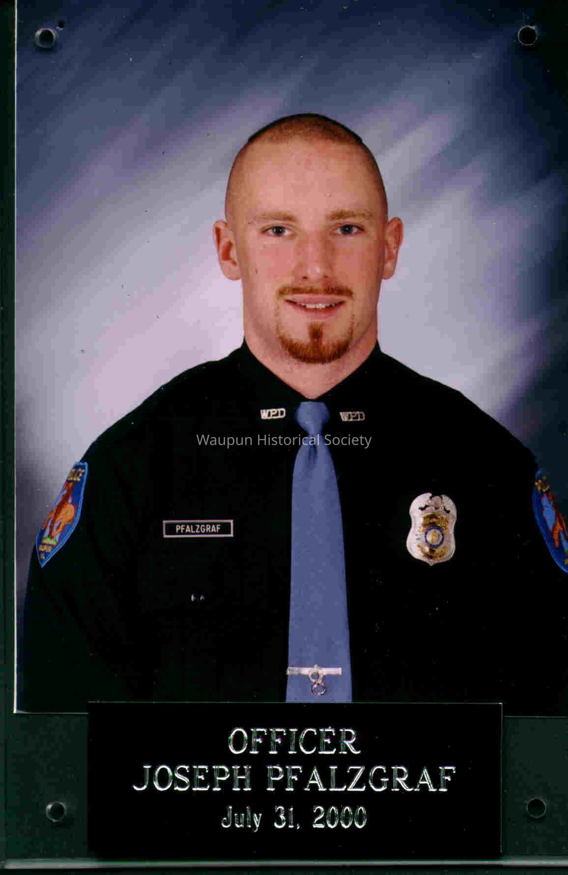 This is part of a series of photos that appeared in the Action Advertiser on May 15, 2002. The article was in recognition of Police Week, May 12-18. The actual article is scanned as item number 2001.0030.0051a and 2001.0030.0051b. Joseph Pfalzfraf is listed as an officer.