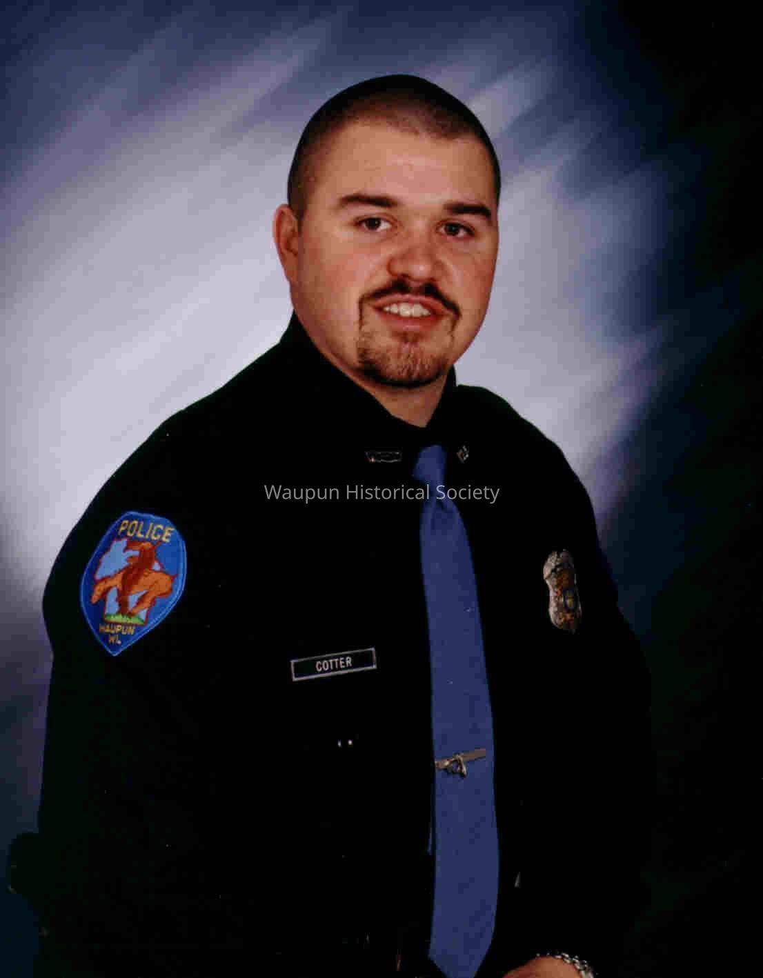 This is part of a series of photos that appeared in the Action Advertiser on May 15, 2002. The article was in recognition of Police Week, May 12-18. The actual article is scanned as item number 2001.0030.0051a and 2001.0030.0051b. Brock Cotter is listed as an Officer.