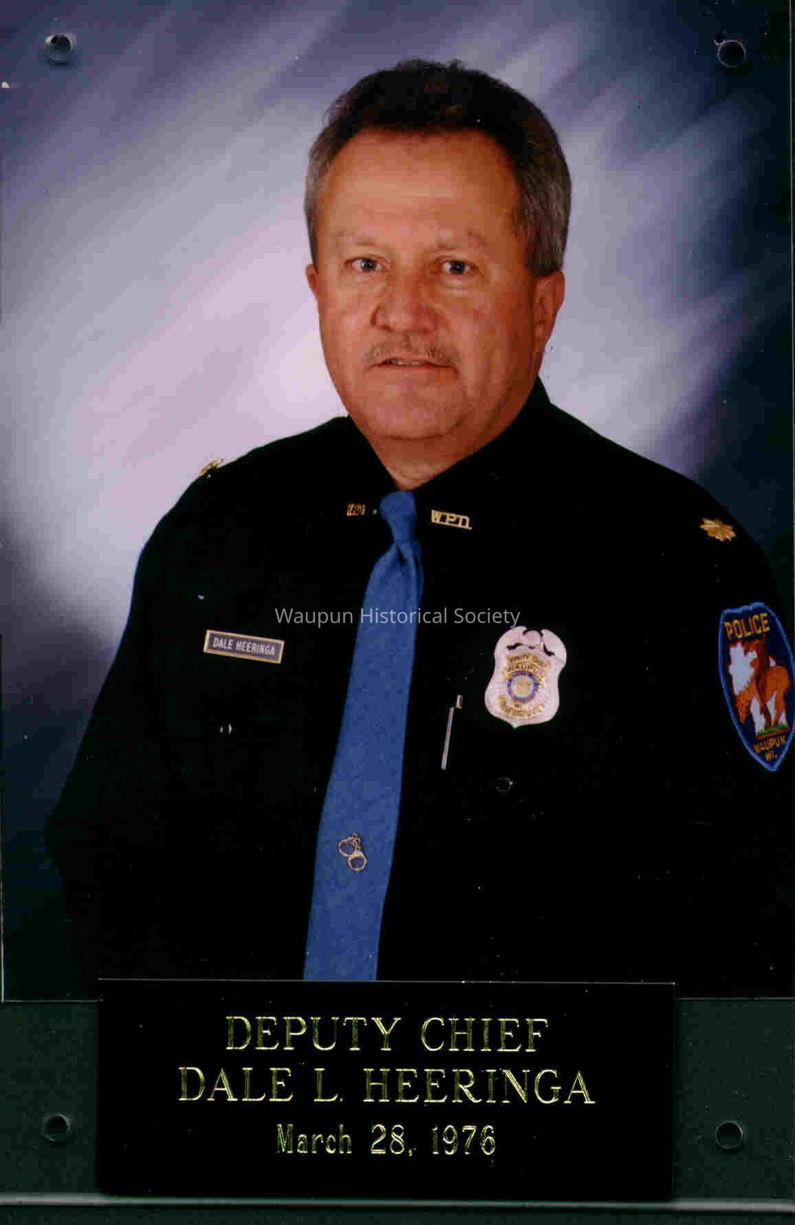 This is part of a series of photos that appeared in the Action Advertiser on May 15, 2002. The article was in recognition of Police Week, May 12-18. The actual article is scanned as item number 2001.0030.0051a and 2001.0030.0051b. Dale Heeringa is listed as the Deputy Chief of Police.