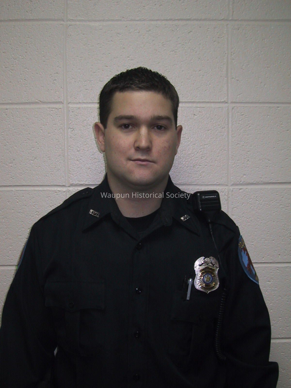This is part of a series of photos that appeared in the Action Advertiser on May 15, 2002. The article was in recognition of Police Week, May 12-18. The actual article is scanned as item number 2001.0030.0051a and 2001.0030.0051b. Jeremy Rasch is listed as an Officer.