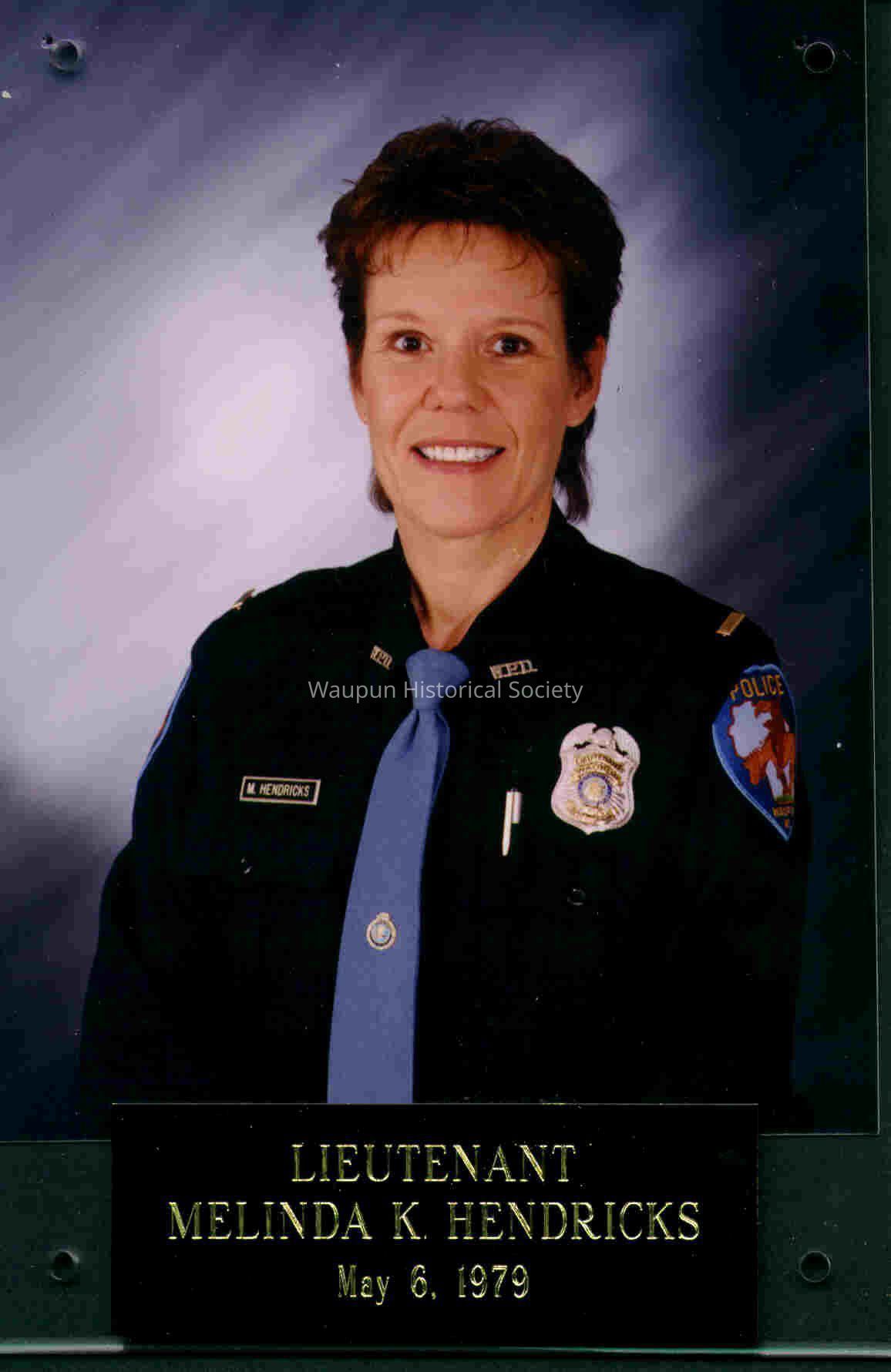 This is part of a series of photos that appeared in the Action Advertiser on May 15, 2002. The article was in recognition of Police Week, May 12-18. The actual article is scanned as item number 2001.0030.0051a and 2001.0030.0051b. Melinda Hendricks is listed as a Lieutenant.
