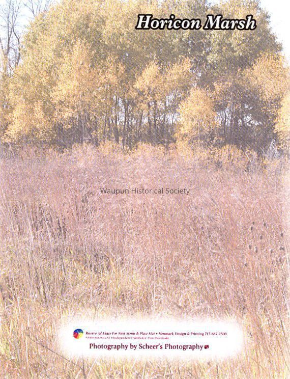 Pictures of End of the Trail Statue, Horicon Marsh, Immanuel Luthern Church, Zoellner Park and many local advertisements.