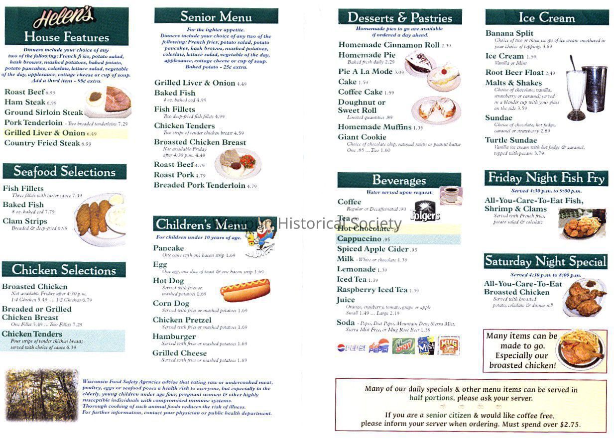 Helen's Kitchen Fold-Out Menu, "Located in Historic Waupun"