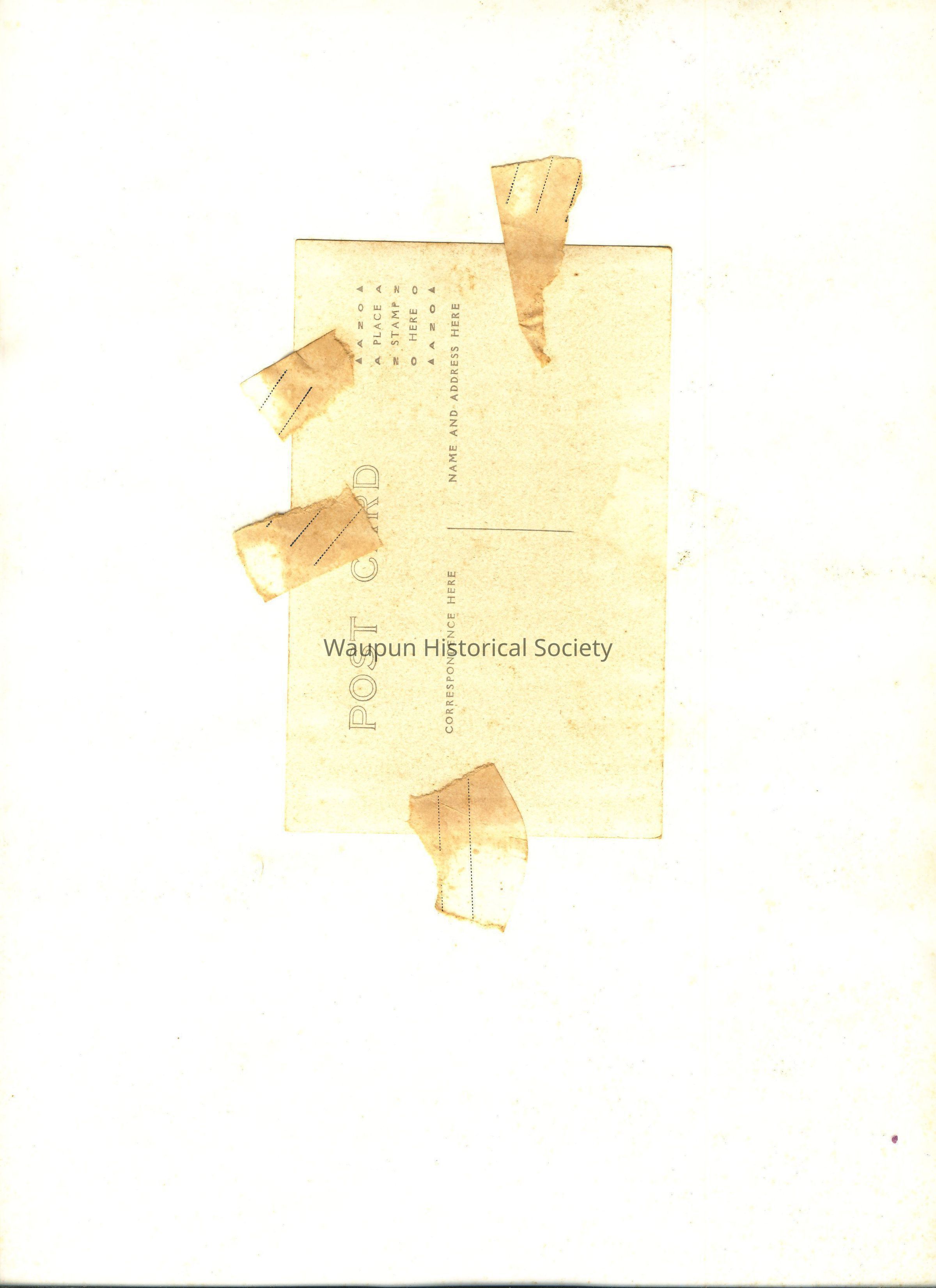 This photo was in a wooden frame w/glass. The wooden frame is in a paperbag and placed in a box up in the attic at the Carnigie building with other wooden frames. The accession number is printed on the bag for identification purposes.Acquisition