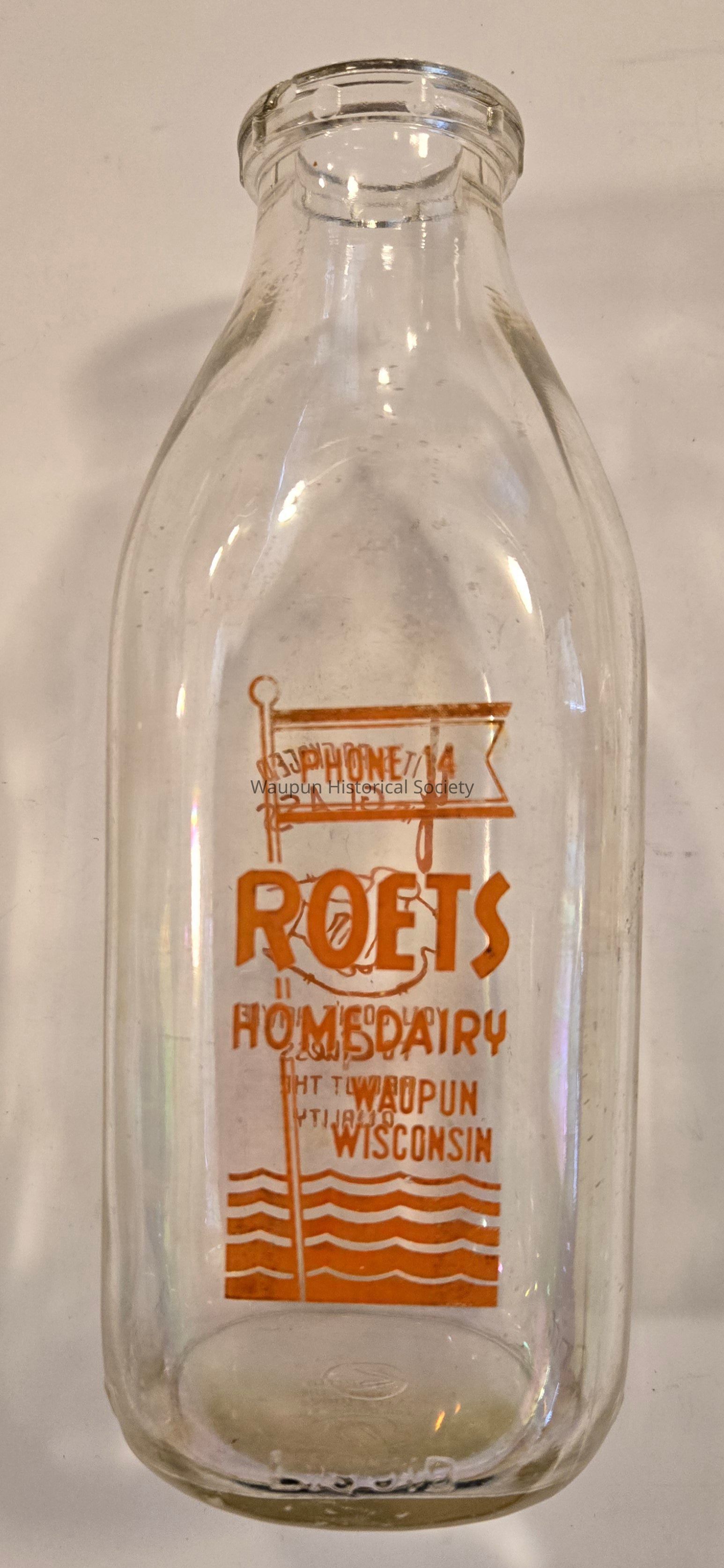 Milk Bottle, Dairy, Roets Dairy, One Quart