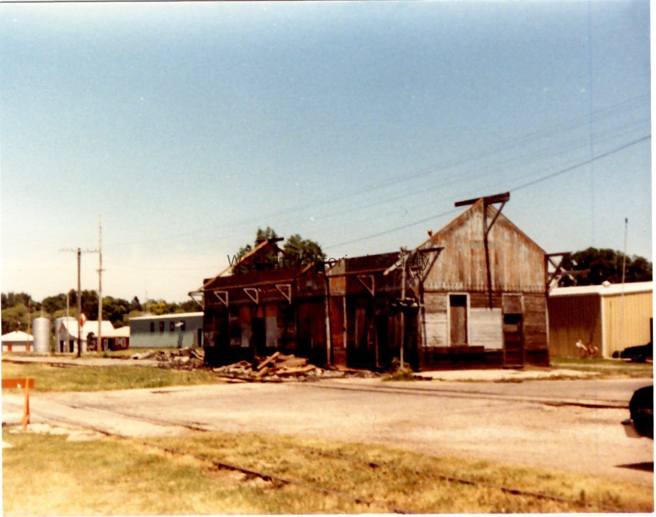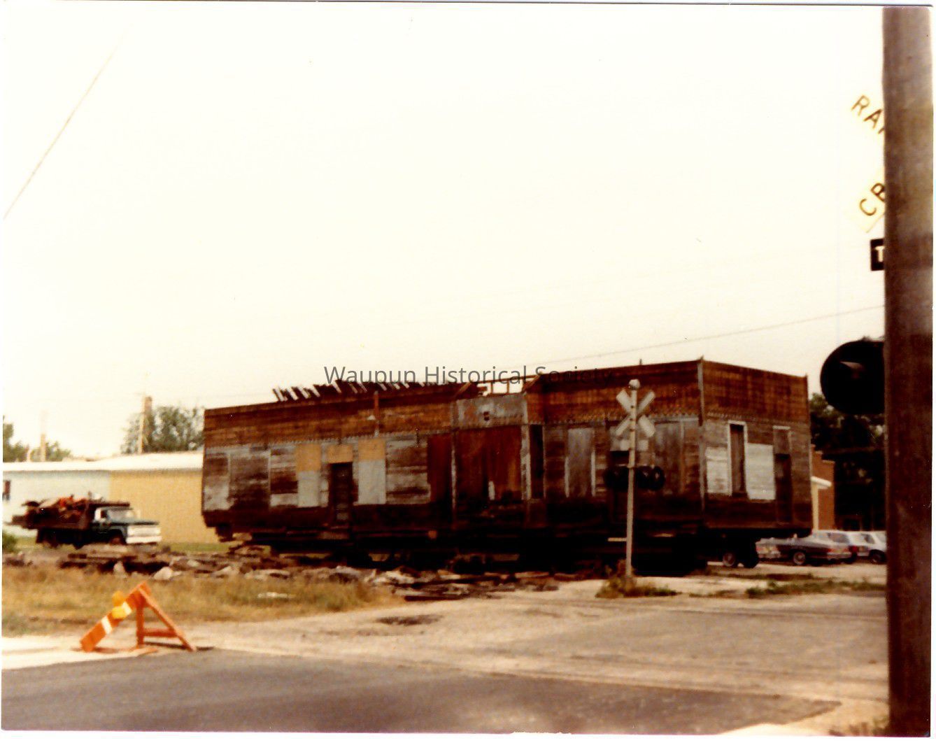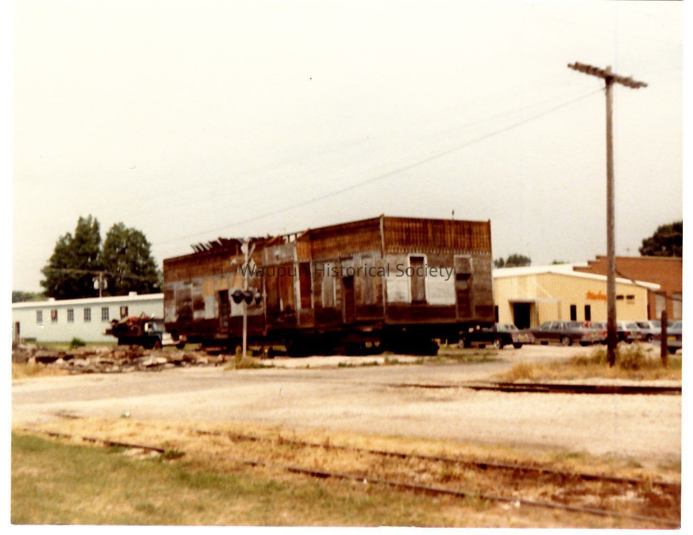 These three photos appear to be the moving of the Waupun Train Depot to its new home from Franklin St. to the home of D. T. Kedinger on State Highway 103. Mr. Kedinger took apart the additions to the depot as appears in photos.Acquisition