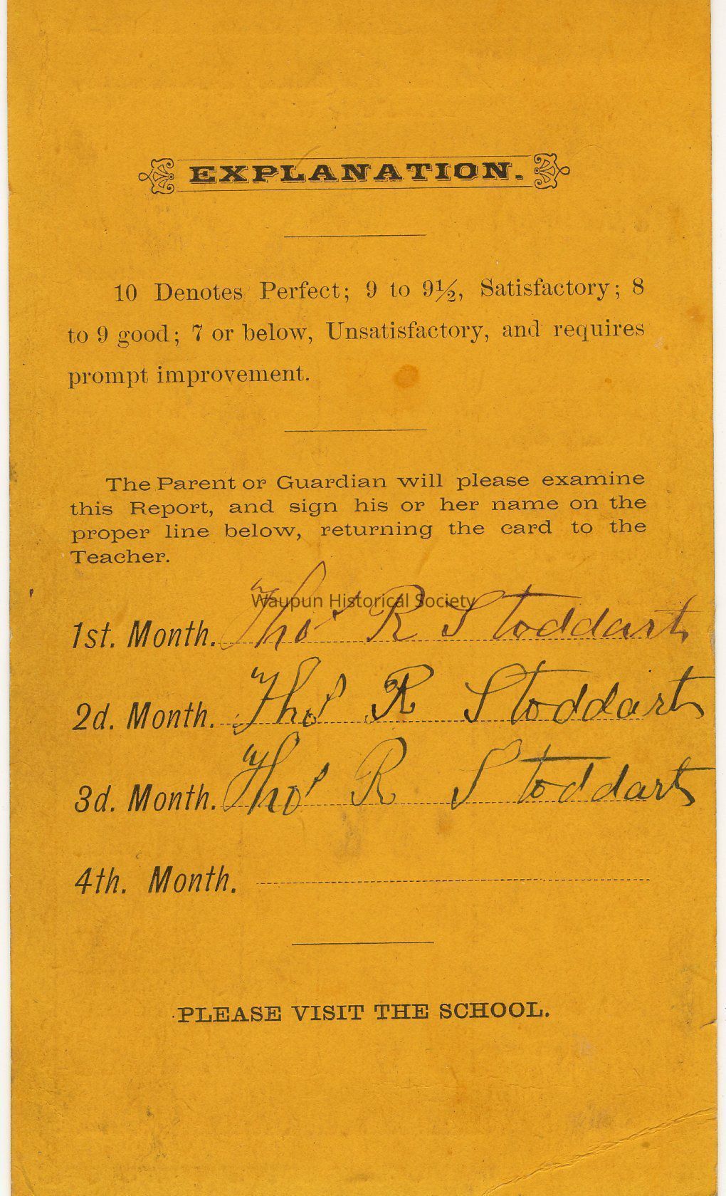 North Ward Public School Report Card. This is the Dec. 19th, 1884 Report card for Aggie Stoddart. Her teacher was A.Z Howard. Signed on the reverse side by Tho. R. Stoddart.Acquisition