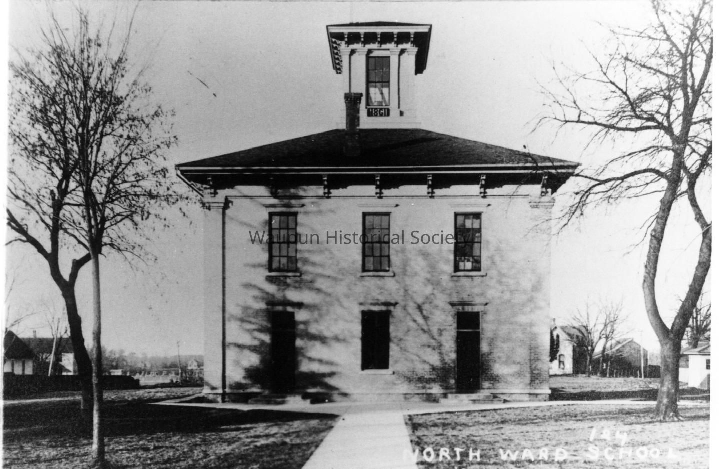 The North Ward School. Photo 2001.0002.0001 shows this building in front of the 1913 high school. This building was razed when the 1913 High School opened.Acquisition
