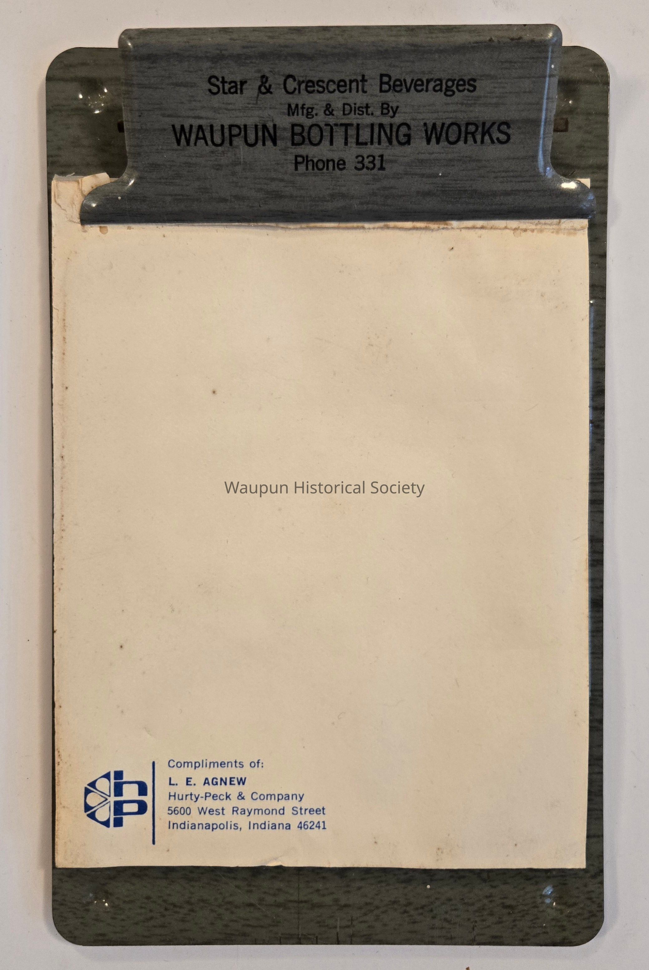 Note Pad Holder, Metal, Waupun Bottling Works, Star & Crescent